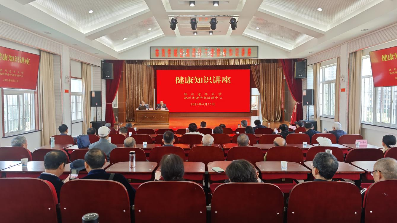 4月15日上午,池州老年大学与池州市老干部活动中心联合举办了一场主题为“春日之约启新篇·杏林春雨润晚晴”的健康知识讲座。市直住城区副县级以上离退休干部、池州老年大学师生及市军休中心退休干部等80余人参加讲座。