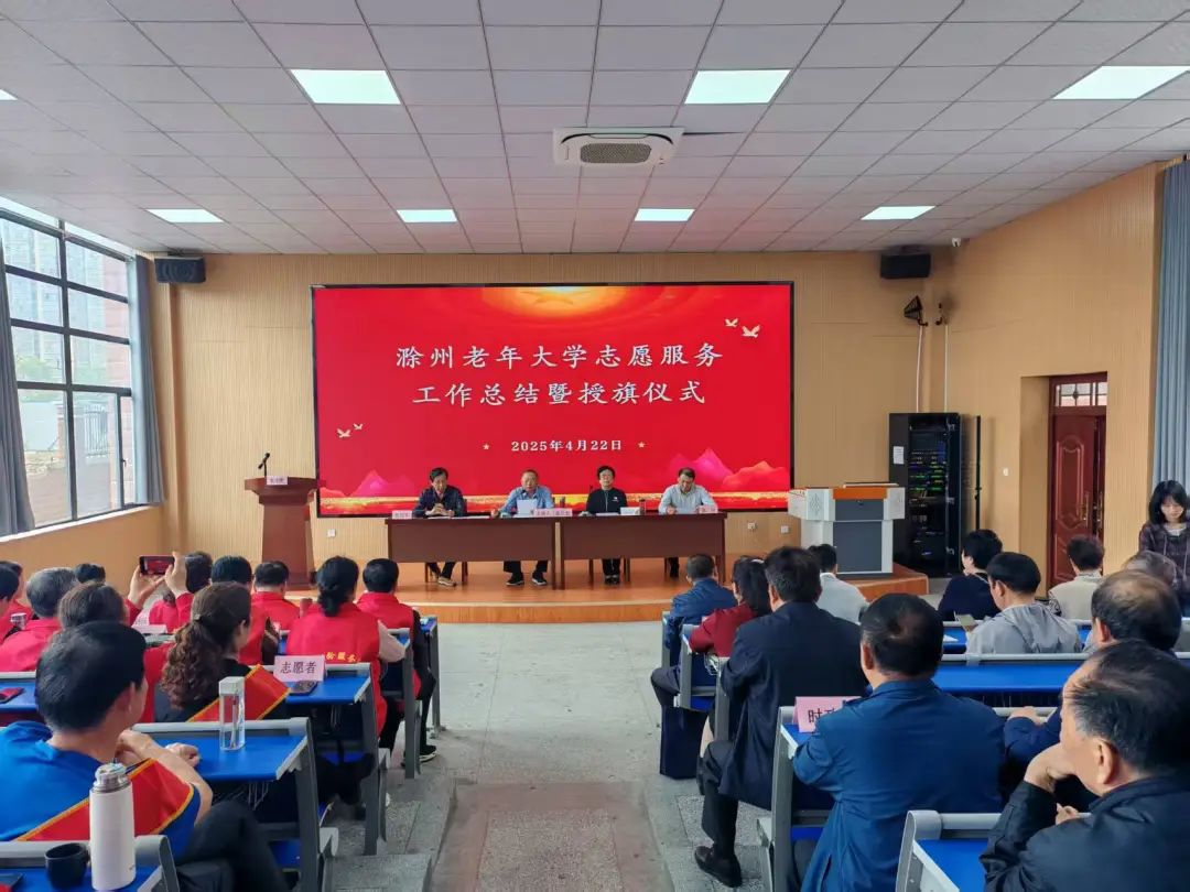 4月22日下午,滁州老年大学隆重举行志愿服务工作总结暨授旗仪式。市委老干部局领导、老年大学校领导、系书记主任、思政班学员、志愿者代表以及老年学员代表齐聚一堂,共同回顾了志愿服务的历程,并展望了新的征程。老年大学校长张尽忠主持会议。