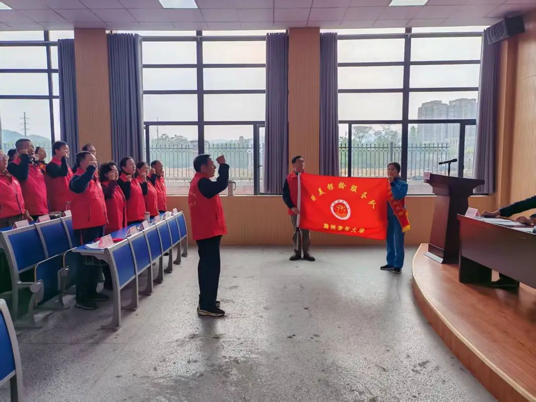 市委组织部副部长、老干部局局长陈岭为“醉美银龄服务队”授旗。全体志愿者在韩云同志的带领下庄严宣誓,誓言铿锵有力,表达了他们践行志愿精神,为社会贡献银发力量的坚定决心。接过旗帜,服务队将承担更重大的责任与使命,在志愿服务的道路上继续砥砺前行。滁州老年大学“醉美银龄服务队”拥有深厚的历史积淀,已成功打造了特色志愿服务品牌。品牌名称源自《醉翁亭记》,寓意美好,象征着老年志愿者退休不褪色的奉献精神。为推动志愿服务的发展,学校优化了组织架构和制度体系,建立了全面的培训、管理及保障体系,并加强了品牌宣传,相关报道在老年教育期刊、学习强国、滁州日报等多家媒体转载,提升了品牌影响力。
