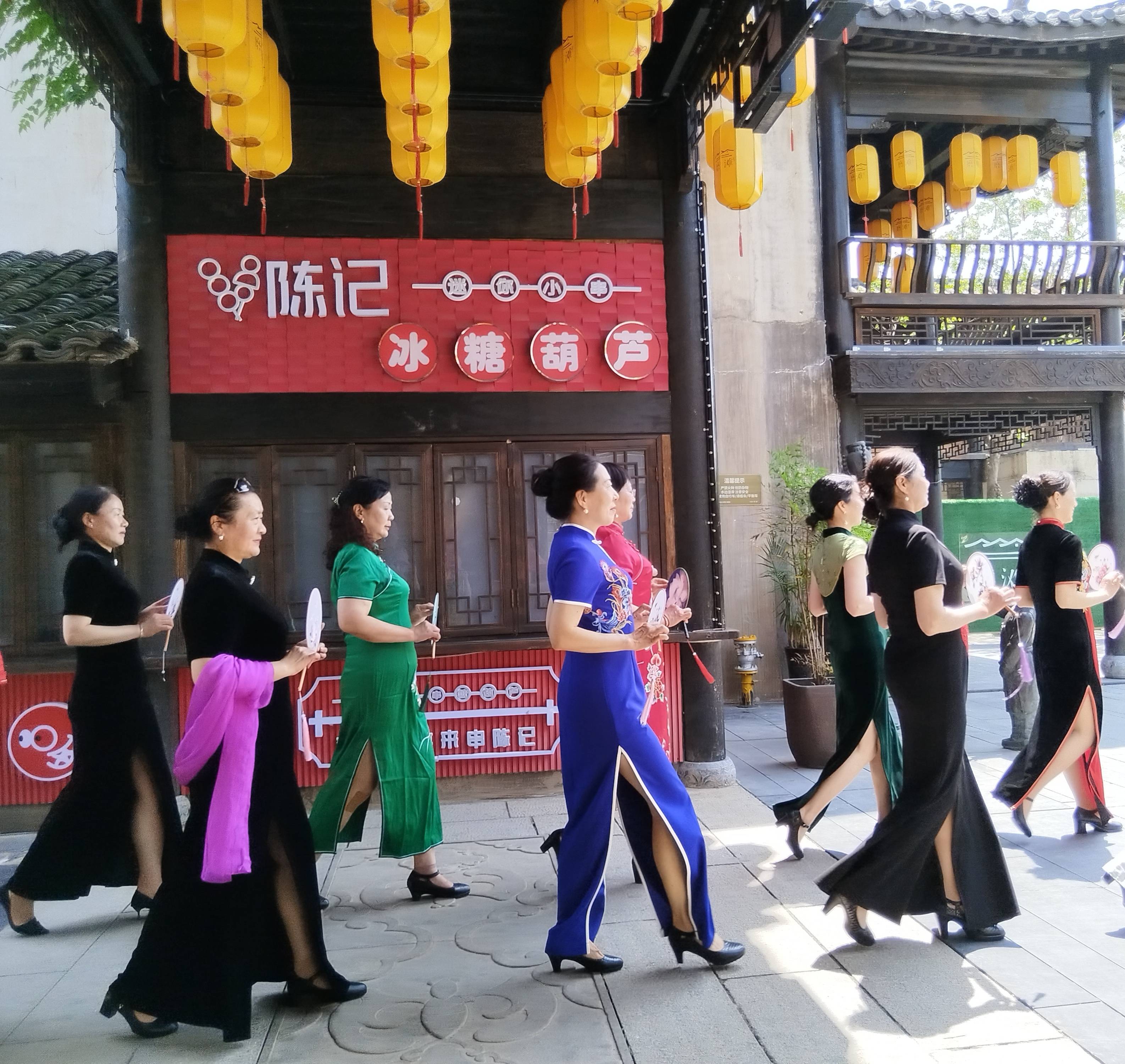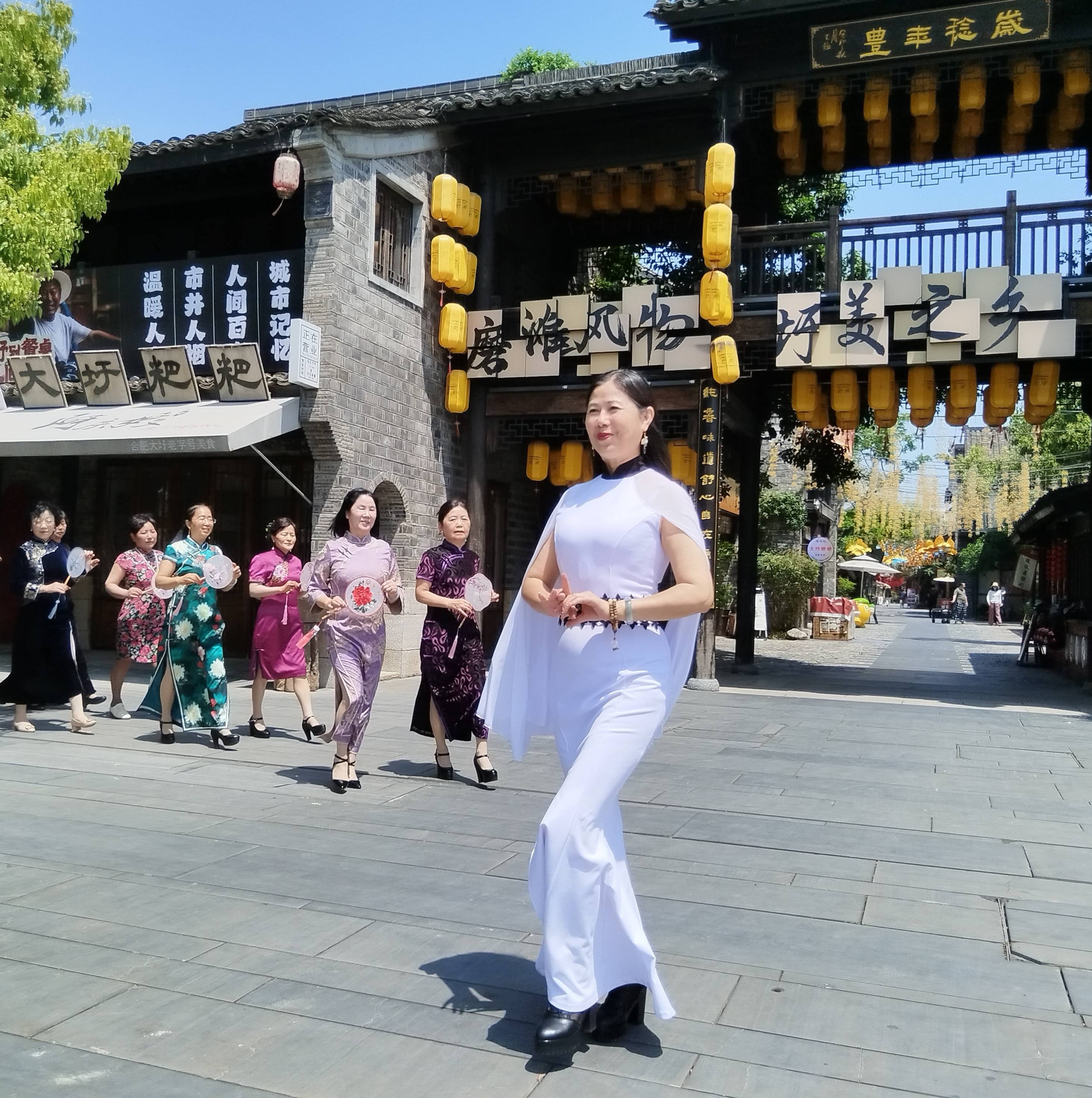 在磨滩风物街,学员们在悠扬的音乐旋律中,在老师的示范下,一遍又一遍练习着旗袍秀《落》《遇见旗袍》《柳烟飘渺润江南》《小城画师》《三生花》那婀娜多姿、端庄大气的每一步,秀出了旗袍的韵味和魅力,成了当日磨滩度假区里一道最靓的风景线,为度假区呈现了一场精彩的视觉盛宴。