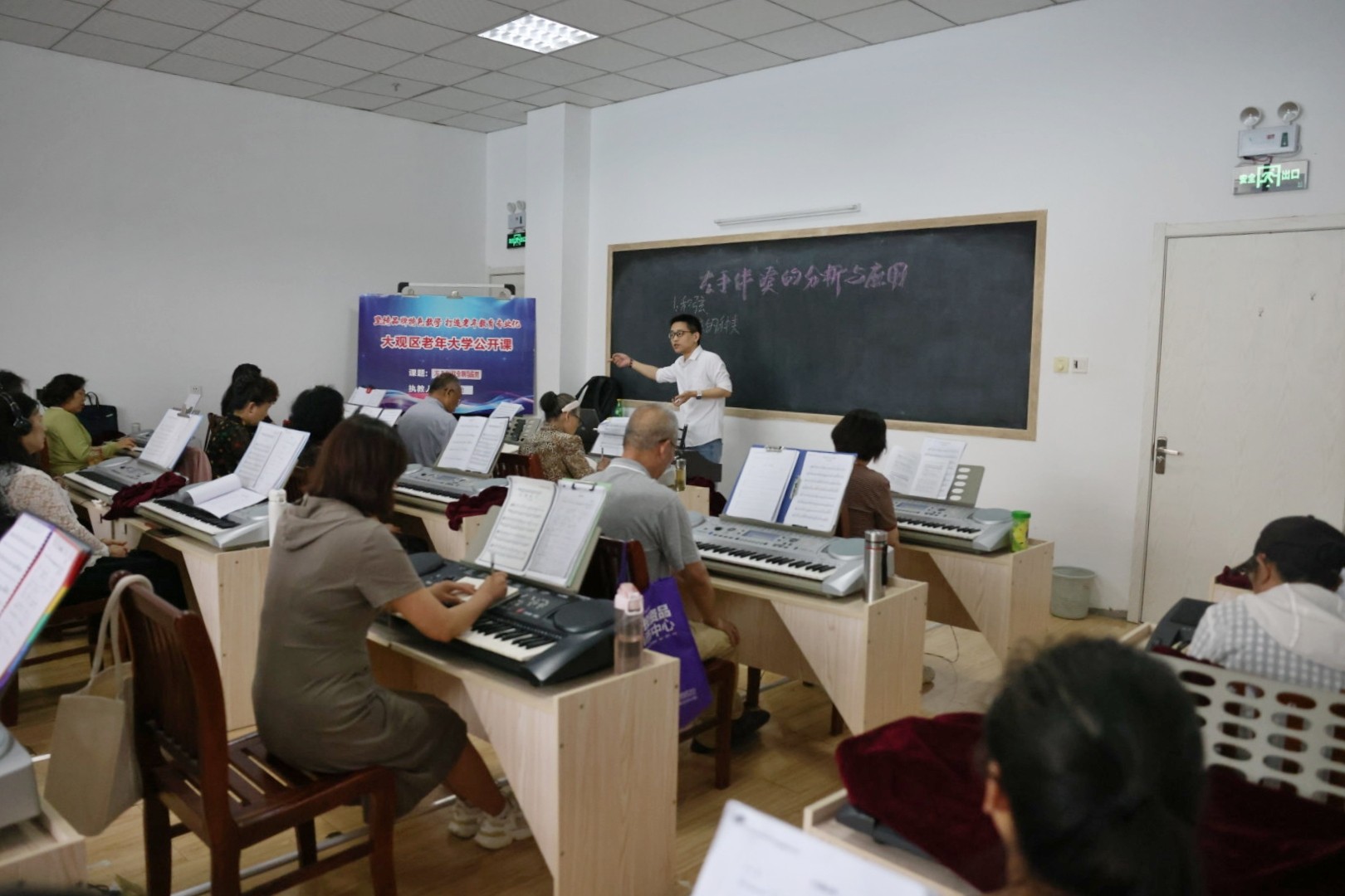 在公开课现场,学员们热情高涨,积极参与互动。他们或认真聆听讲解,或积极提问交流,或动手实践演奏,展现出了老年人的精气神和学习热情。大观区老年大学一直致力于满足老年人多元精神文化需求,积极推进“老有所学”工作。学校设有多个校区和专业课程,其中电子琴课程备受学员们的喜爱。此次公开课的举办,不仅为学员们提供了一个学习交流的平台,也展示了学校在老年教育方面的成果和特色。