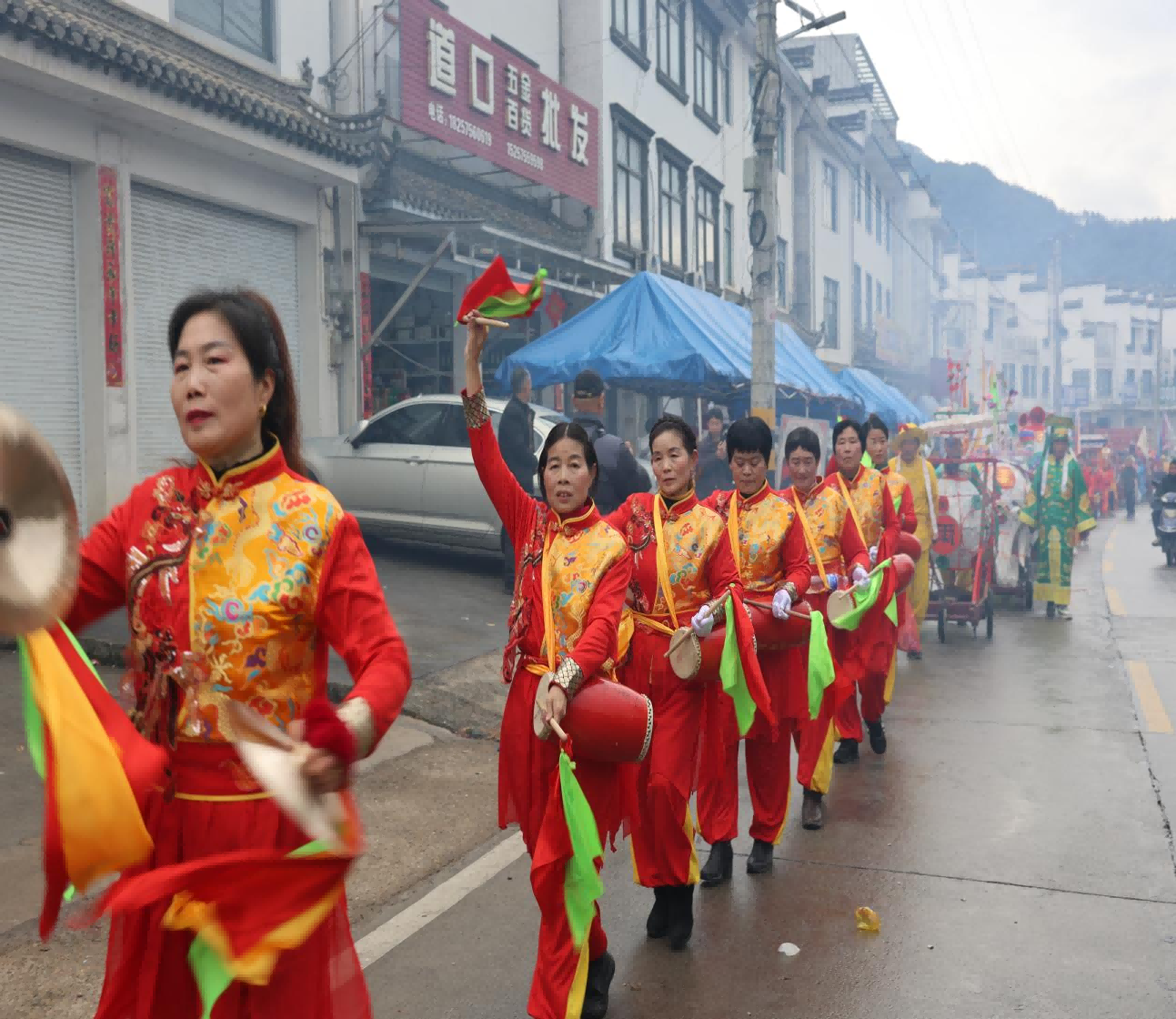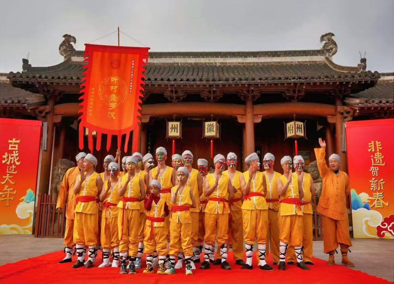开场鼓舞《好运连连》气势磅礴,激昂的鼓点,仿若滚滚春雷,奏响希望之章,瞬间点燃观众的热情。村歌《千年叶村多迷人》,嘹亮悠扬,如诗如画,往昔与今朝在旋律中交织,乡愁与憧憬在游子心中蔓延。舞蹈《为你祈祷》《红色娘子军》《双脚踏上幸福路》《别知己·童年老家》《男儿当自强·一路向北》等一一亮相,矫健的英姿,恰似春日灵动的飞雁,在舞台上蹁跹起舞,处处洋溢着欢乐祥和的气息。传统剧目《绣红旗》《山坡坡》《失街亭》《女驸马》《天仙配》,他们将每一个角色塑造得活灵活现,让人仿若穿越时空。非遗民俗瑰宝《叶村叠罗汉》更是他们村晚等活动的重头戏,十里八乡都赶来观看。他们脸画罗汉妆,身着薄衣,在风寒料峭的戏台上,古朴威严,层层相叠,似众星捧月,如巍巍金塔,筑成五凤门楼,尽显传统魅力,将活动气氛推向最高潮。