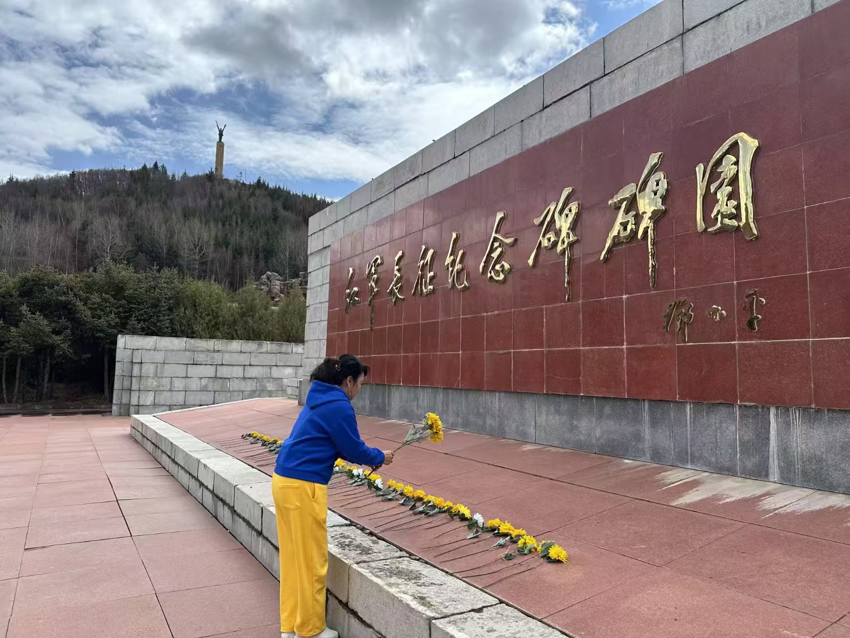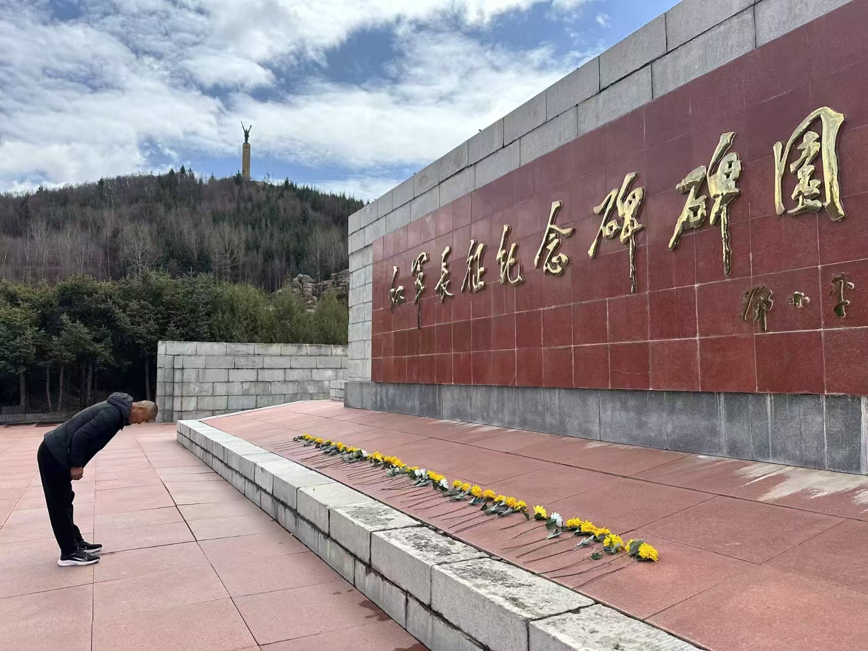 高耸的纪念碑前,老党员们手捧黄白两色菊花,缓步拾级而上。大家将花束轻放在浮雕基座,“战士们用命换来今天,我们今天得自己走上去。”随着《献花曲》响起,老人们深深三鞠躬,褶皱的眼角泛起泪光。