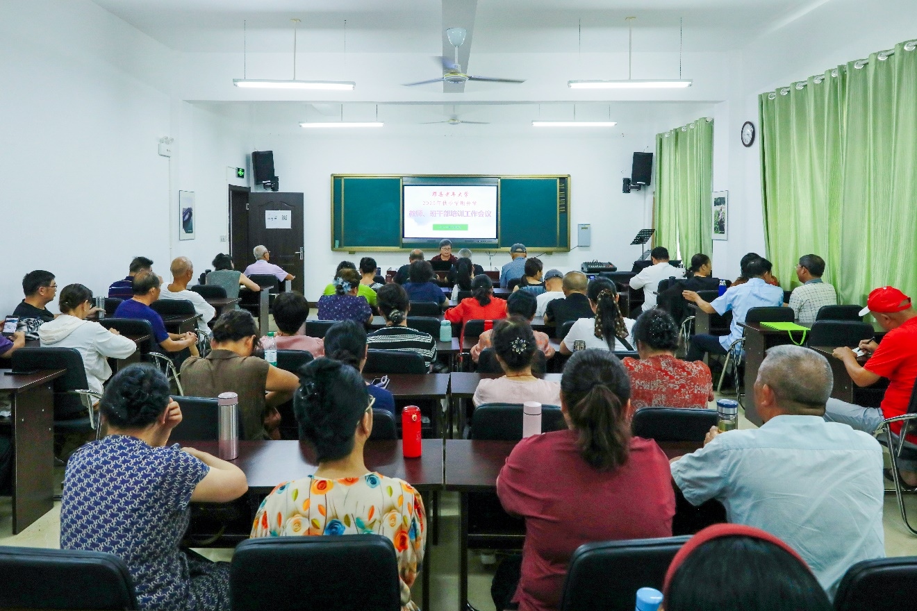 为全面提升教师队伍素质,加强班级管理效能,确保新学期各项工作顺利开展,黟县老年大学于9月5日下午,组织召开了“2025年秋季学期教师、班干部培训工作会议”。此次会议作为新学期开学第一周的重要活动,学校全体行政班子成员、全体教师和32个教学班的党小组长、班长等80余人参加培训会。会议由副校长吴桂兰主持。