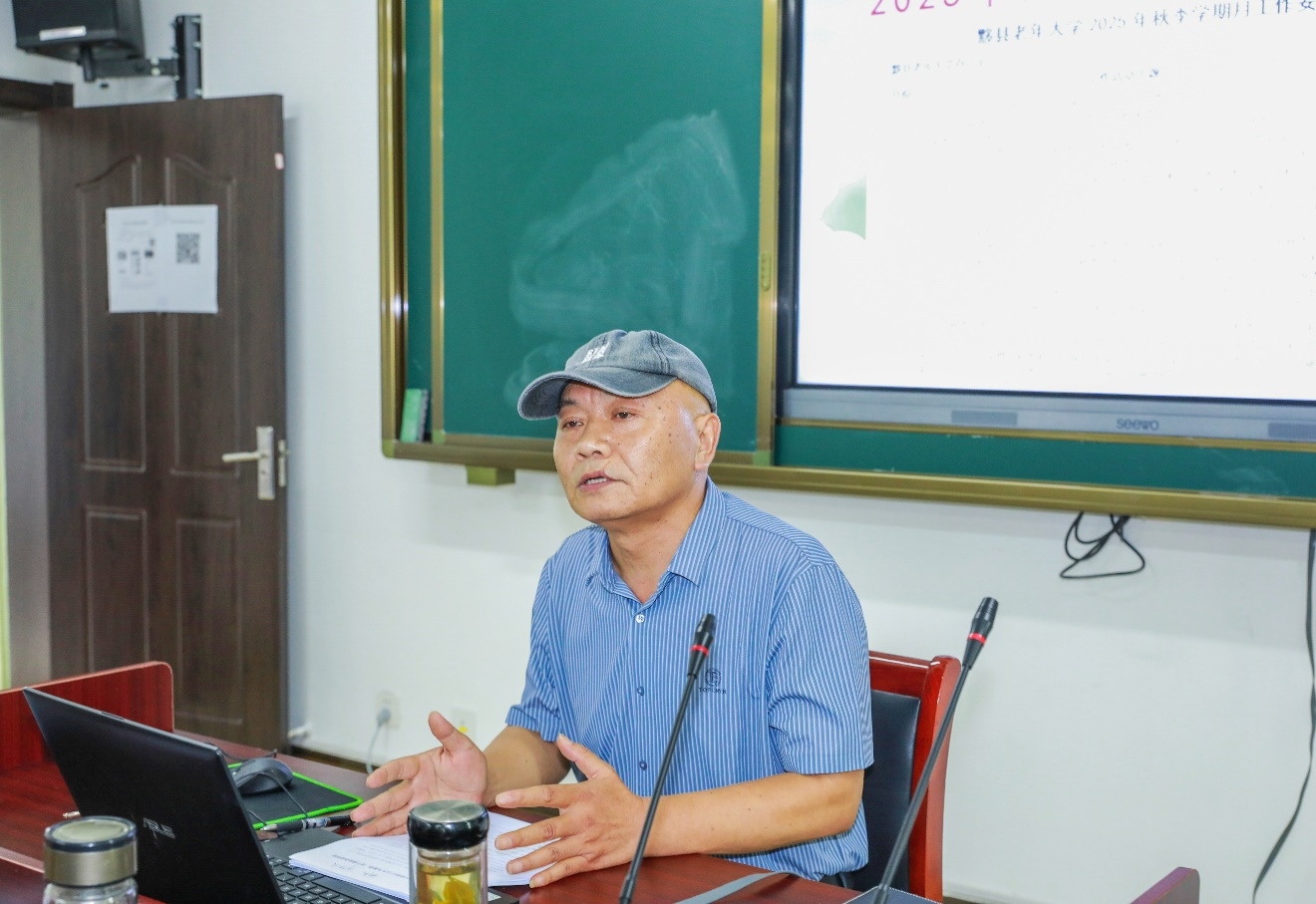 副校长程国营对新学期各项工作进行了全面细致的安排。他强调,新学期要以提升教学质量为核心,以优化服务管理为抓手,重点做好课程体系建设、教学规范管理、学员服务保障等方面工作。程国营结合老年教育特点,为与会人员作了《老年学员心理与教学中的情感交流》《老年大学课堂教学环节规范》专题辅导讲座。讲座深入浅出地分析了老年学员的心理特征,分享了课堂教学中的情感交流技巧,并详细解读了课堂教学各环节的规范要求,为教师们开展教学工作提供了专业指导。