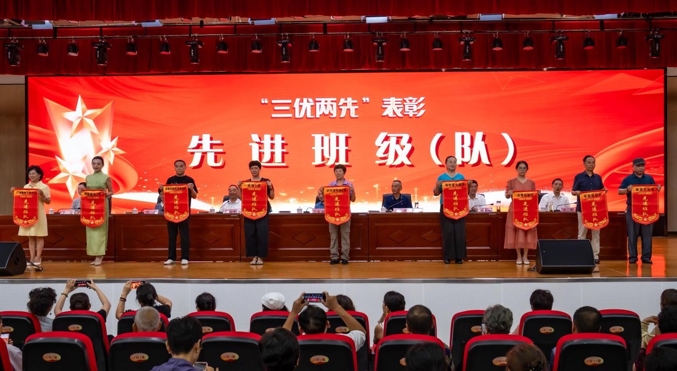 刘庆德校长在总结讲话中回顾了学校近年来在办学规模、教学质量以及品牌影响力等方面取得的显著进展,肯定了广大教师、学员和教职工的共同努力与付出,并对全校师生提出了殷切期望:一是希望全体教师永葆育人初心,将温暖与智慧倾注于老年教育事业,做“有情怀”的银龄园丁;二是希望工作人员深耕为老服务,不断提升专业能力,做“有本领”的管理能手;三是希望广大学员涵养高尚情操,展现银龄担当,做“有风范”的时代长者。全体师生要以此次表彰为新的起点,以更加饱满的热情、更加务实的作风,共同谱写六安老年大学发展新篇章。
