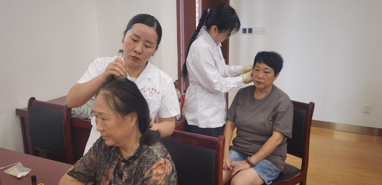 和讲座同步进行的,是耳穴压豆、头部刮痧、火龙罐等中医适宜技术的现场体验。来自中医护理门诊和放疗二科的两名护师一边操作,一边细致讲解每一项技术的作用与适用情形,学员们亲身体验后连连称赞:“暖暖的,很舒服!”