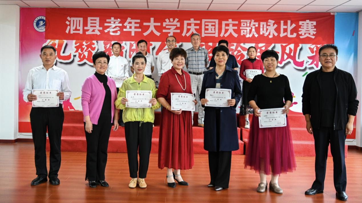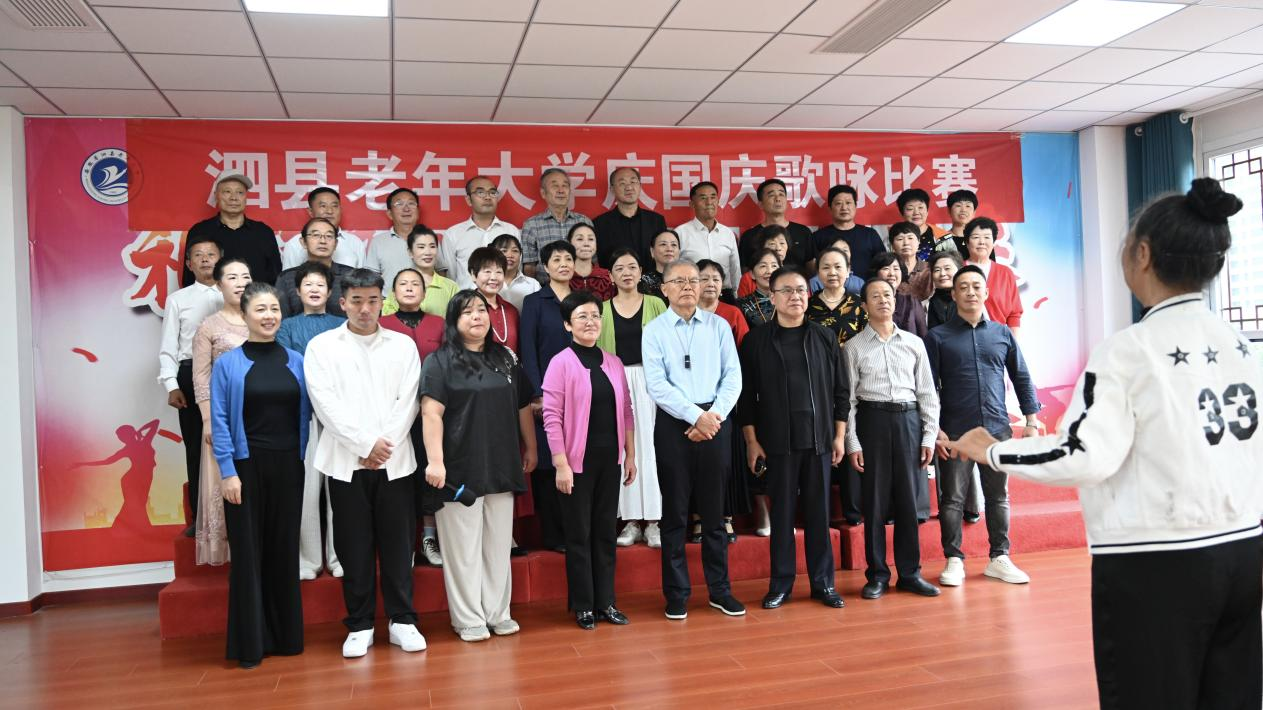 为庆祝中华人民共和国成立76周年,丰富老年学员精神文化生活,9月28日,泗县老年大学庆国庆歌咏比赛在校园2号楼多功能厅开唱,近30名老年学员以歌为媒,用嘹亮歌声抒发对祖国的无限热爱。