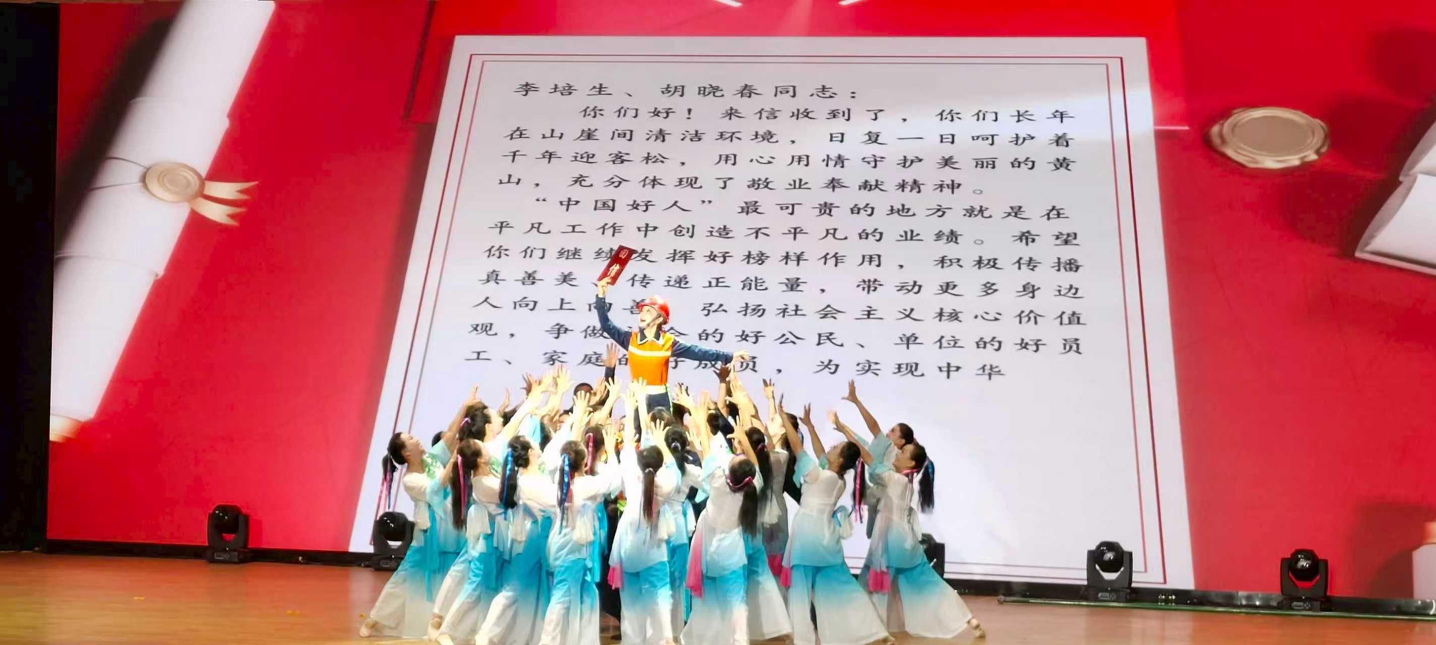 礼赞新时代,舞颂“守护者”。国庆前夕,“永远跟党走”全省老干部系统文艺汇演落幕,黄山市老年大学姚芭金老师创编的舞蹈《一封回信》荣获最佳节目奖。该作品以习近平总书记给 “中国好人” 李培生、胡晓春的回信精神为创作灵感,以二人长年在黄山山崖清洁环境、守护迎客松的感人事迹为原型,通过舞蹈语言生动展现平凡岗位中的不凡奉献精神。