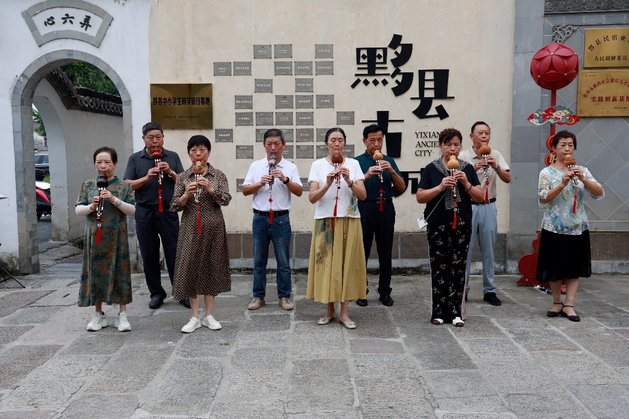 活动首站在黟县古城。古城的石板路、古牌坊和斑驳的墙壁,见证着岁月的变迁。黟县老年大学二胡班学员在县文化馆“百姓文化大舞台”演奏《洪湖水浪打浪》《千里共婵娟》等乐曲,一曲曲饱含深情的乐曲尽情地表达着学员们对祖国母亲的深情。