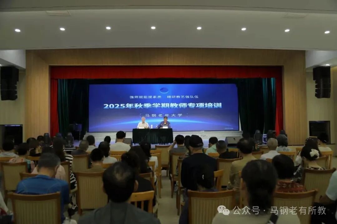 当天下午培训第一阶段,由陈伟革副校长主持培训会并作简短动员,苏鉴钢校长进行专题辅导。他首先从马钢老年大学作为企业老年大学,在省、市及全国老年教育领域的地位与发展定位切入,强调马钢老年大学作为全国首批、第一所企业办的标准示范老年大学,必须秉持钢铁报国的志向,为新时代老年教育高质量发展贡献“马钢样本”。在此视野与平台下,如何提升办学质量、优化教学水平,苏校长指出,办学质量的生命线在于教师素质,高品质教育的核心在于高水平师资——唯有高素质、高水平的教师,才能打造高水平教学,创办高品质学校。随后,苏校长紧扣学校制定的《教师守则》,围绕“优秀教师”这一核心主题,着重从三方面展开培训:一是注重教学研究,提升教学质量;二是积极参与学校教学教研活动,增强自身专业素养;三是注重教书育人,以优良的教学水平与言行举止引导、感染广大学员。他要求全体教师紧跟时代步伐,强化师德师风建设,以“铸魂育人”的担当,为老年大学高质量发展注入新动力。