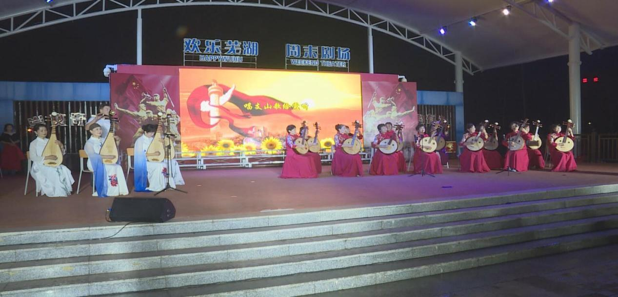 整场演出共19个节目,由三部分组成。第一部分:抗战必胜、正义必胜。先用《中国鼓》、二胡齐奏《南湖红船》暖场,接着用大合唱《四渡赤水出奇兵》开场,再用琵琶合奏《弹起我心爱的土琵琶》、葫芦丝演奏《沂蒙情深》、民乐小合奏《唱支山歌给党听》、小合唱《游击队之歌》推送,当庐剧班杨建平老师历时半年创作的《歌唱英雄王二小》抗战情景剧演完后,整场掌声雷动,彰显出在中国共产党领导下的抗日军民,奋勇抗战,抵御外辱,最终赢得胜利的历史主题。
