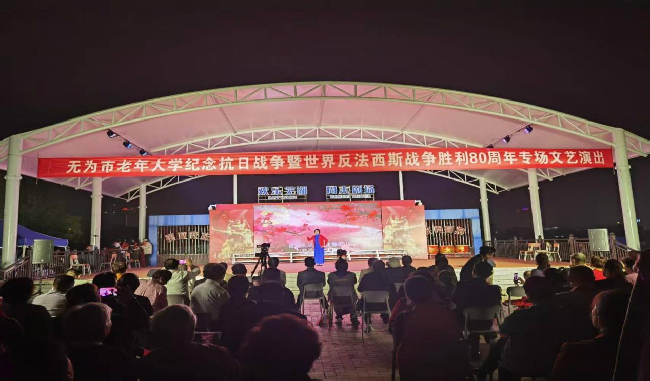 10月15日晚,无为市老年大学在无城周末剧场举办“纪念抗日战争暨世界反法西斯战争胜利80周年专场文艺演出”活动。无为市委常委、组织部长刘求标,市委宣部副部长、文联主席王梅,以及市教育局、文化局、融媒体中心、老干部服务中心、文化馆主要负责人应邀观看了演出,无为市老年大学校长洪伟陪同。