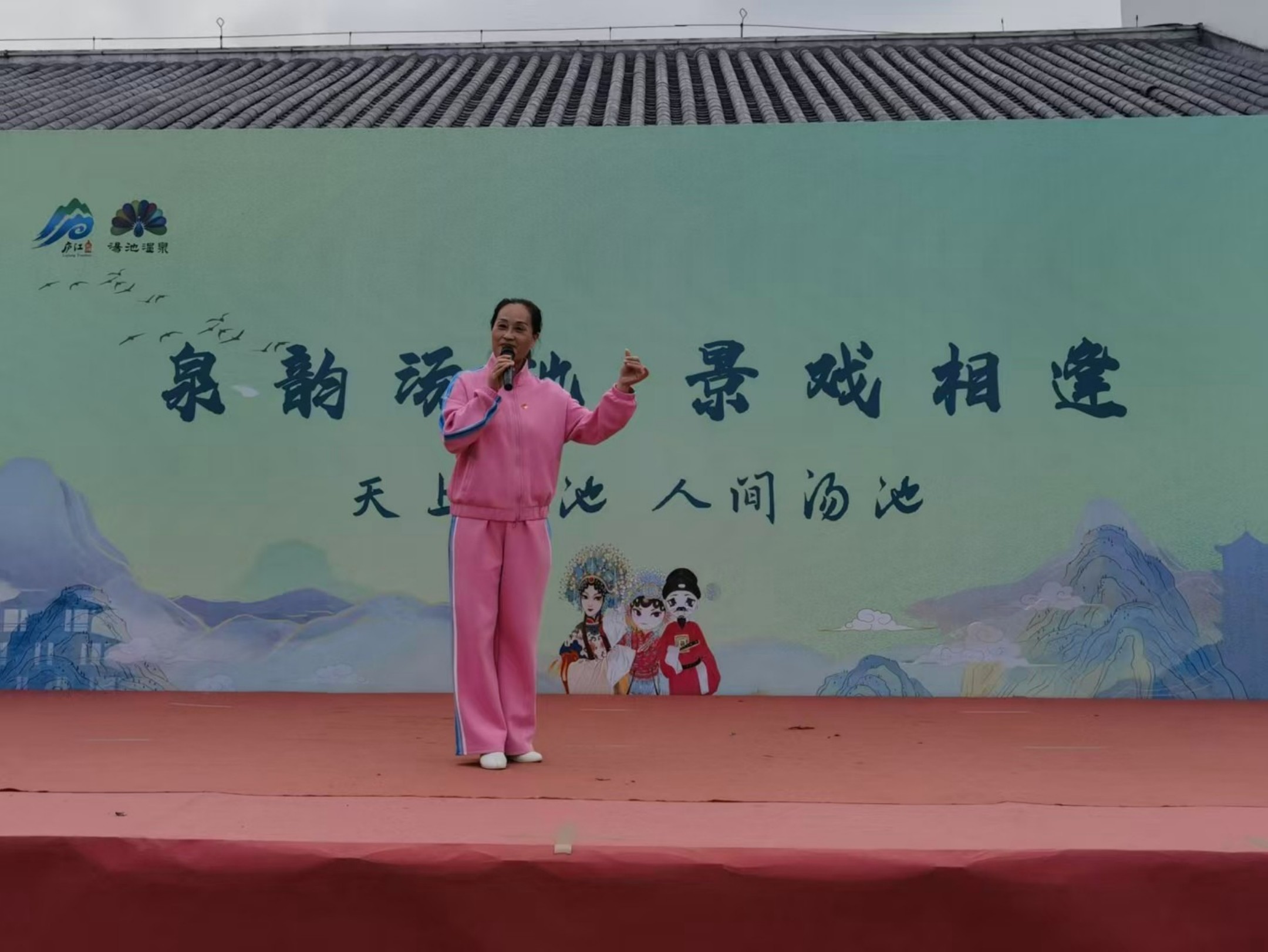 最后,一行人来到庐江汤池温泉“泉韵汤池,景戏相逢”舞台与当地老年大学学员开展了以歌会友交流活动等。