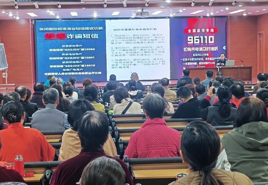 活动邀请了肥东县公安局店埠镇派出所民警宣海燕为老年学员宣讲反诈知识,以生动的真实案例为切入点,从受骗的心理、常见的诈骗方式入手,用通俗易懂的语言,解释了各类诈骗陷阱的特点和防范方法。随后社会义工结合诸多令人痛心的真实案例,绘声绘色地讲述毒品对个人健康、家庭美满以及社会和谐带来的毁灭性打击。随后还把形形色色毒品的模样和特点毫无保留地展示出来,让老人们能清晰辨别。