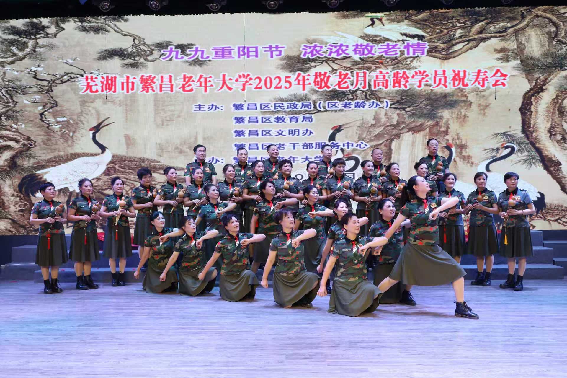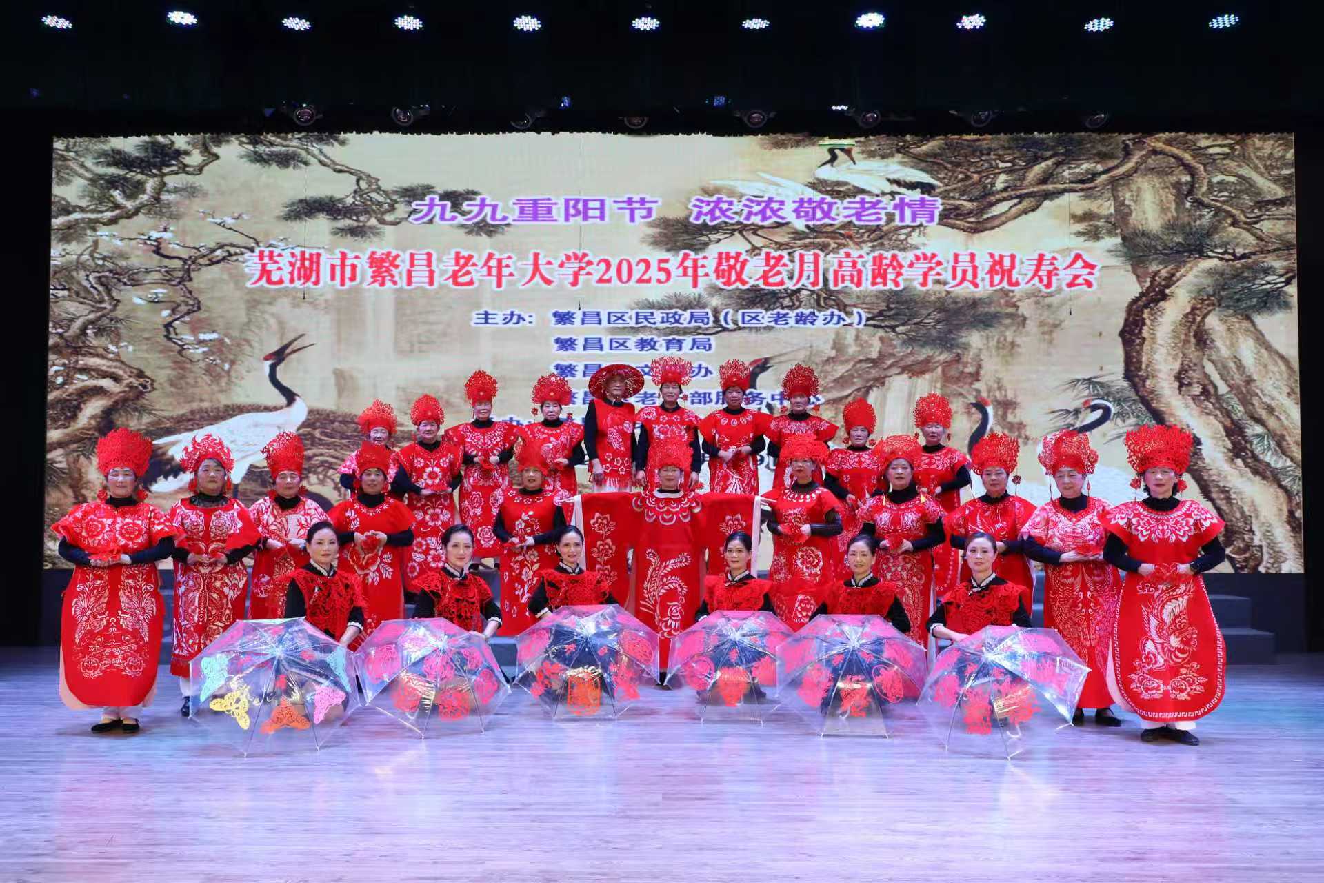 10月29日重阳节当天,由繁昌区民政局(老龄办)、区教育局、区文明办、区老干部服务中心主办,区老年大学承办的“2025年敬老月高龄学员祝寿会”在繁昌老年大学演出大厅隆重举行。祝寿会由繁昌老年大学党委书记、校长朱能雨主持。区政协副主席王重娟,区政协副主席、教育局党委书记、局长王心生,区民政局党委书记、局长何元明,区委宣传部副部长、文明办主任汪华锋,区老龄办主任刘天宇等出席祝寿会。区政协副主席王重娟作了热情洋溢的祝寿词。区领导和出席祝寿会的区有关部门负责人热情为90岁以上的寿星学员披挂寿带。