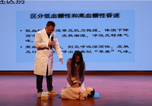 学员们学习热情高涨,认真聆听讲解、记录要点,在实践环节积极举手上台参与操作。面对模拟人,大家按照讲师教授的方法反复练习,讲师在旁逐一纠正不规范动作,现场学习氛围浓厚。
