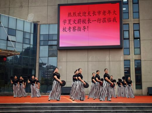 为表达诚挚欢迎,金寨老年大学学员临时编排了一台精彩的小型文艺节目。腰鼓《张灯结彩》以欢快鼓点点燃全场;舞蹈《红船向未来》用优美动作传递时代精神;合唱《我的祝福你听见了吗》深情表达对美好生活的祝愿;交谊舞《我和我的祖国》以翩跹舞步抒发家国情怀;时尚帽子秀《追风》展现老年人活力风采;民乐合奏《金蛇狂舞》更将现场气氛推向高潮。