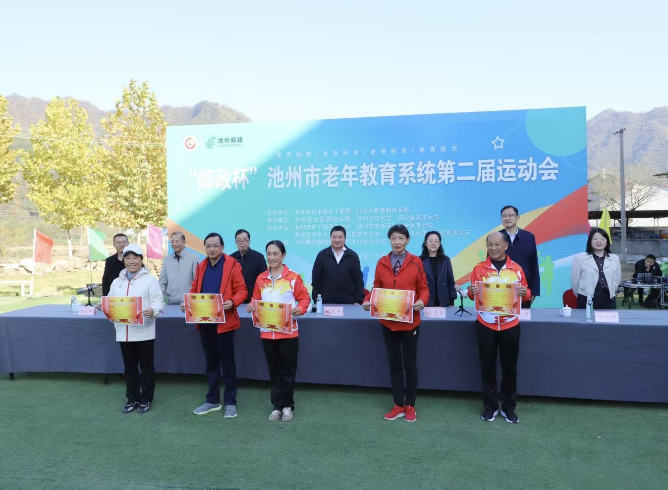 11月14日至15日,“邮政杯”池州市老年教育系统第二届运动会在石台县成功举行。市委常委、组织部部长李洪福宣布运动会开幕,市人大常委会原主任、池州老年大学名誉校长施建华致开幕词,石台县委书记、县长张勇致欢迎词,市委组织部副部长、老干部局局长姜秀丰主持开幕式,中国邮政集团公司池州市分公司党委书记、总经理王昌武致辞,市委教育和体育工委书记、市教育和体育局局长刘茂华,石台县委常委、组织部部长钱叶勇出席开幕式。市、县(区)老年大学、市老干部活动中心、市老年开放大学体育分校等8支代表队共赴银龄体育盛会。