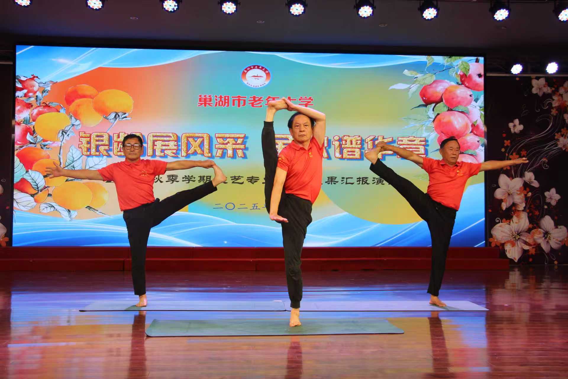 开场在满怀校园情怀的大合唱《巢湖市老年大学校歌》《春风十万里》中缓缓拉开序幕,17个节目逐一登场,从舞蹈到乐器,从合唱到诗朗诵,不仅有摇曳生辉的旗袍秀《南海风光》,柔美与柔韧并存的男士瑜伽《精忠报国》,还有优雅的形体古典舞《一荤一素》,满怀激情的民舞《我的祖国》,更有悠扬婉转的竹笛齐奏《我爱你中国》,琴舞飞扬的电子琴《望月》,老年学员们歌声悠扬、舞姿曼妙,在舞台上尽显自信与活力,为现场观众呈上了一场视听交融的盛宴,赢得掌声阵阵,喝彩连连,生动诠释了“银龄学子”的别样魅力,展现了新时代老年人积极向上的乐观心态和抖擞的精神风貌。