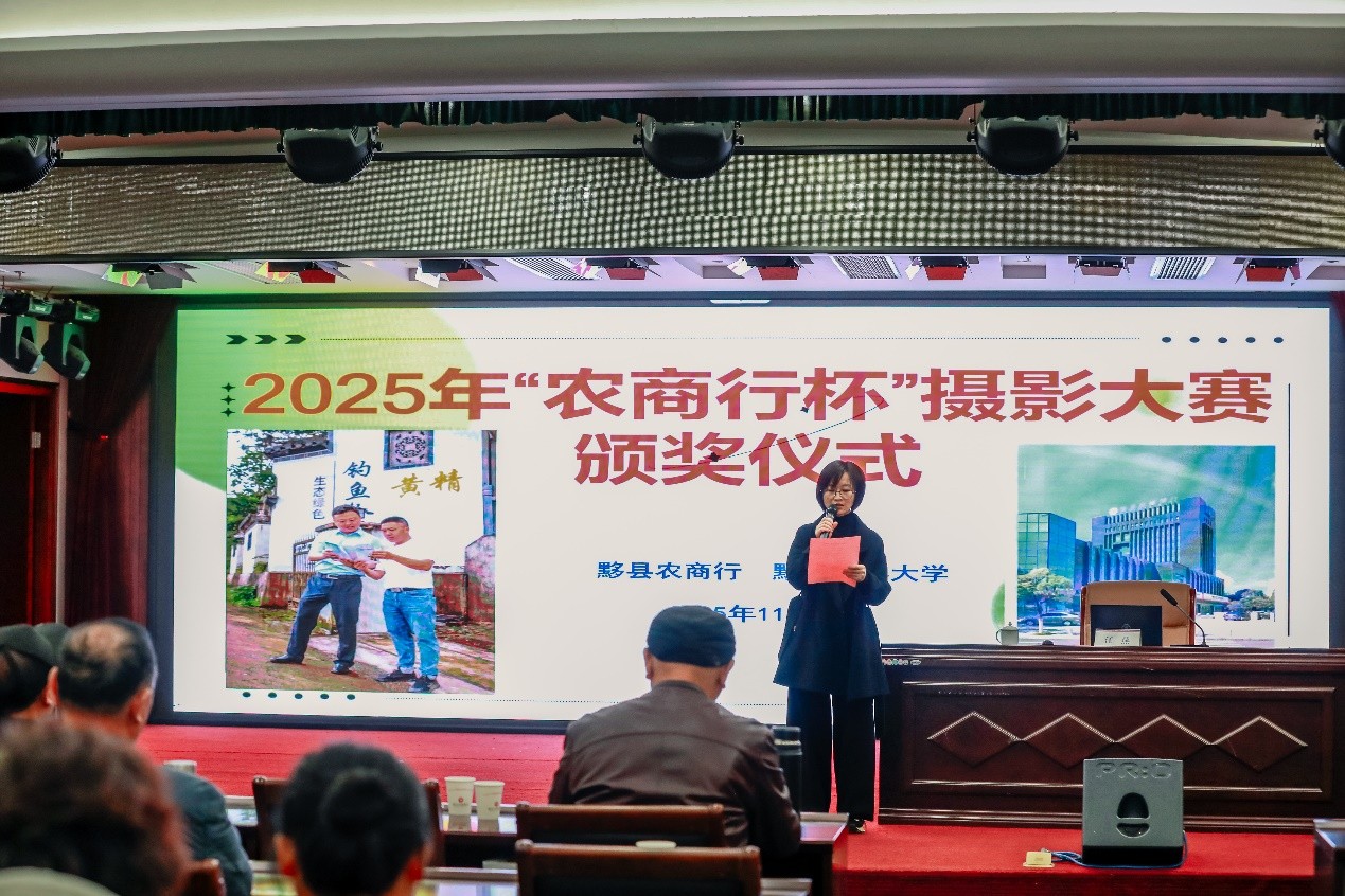 11月21日下午,一场汇聚着艺术与荣耀的盛会在黟县农商行三楼会议室隆重举行。黟县农商行与黟县老年大学联合举办的“2025年‘农商行杯’摄影大赛颁奖仪式”在此拉开帷幕,为这场以镜头捕捉美好瞬间的赛事画上了圆满句号。颁奖仪式由黟县老年大学副校长吴桂兰主持,黟县农商行副行长江燕、黟县老年大学校长严月全等领导嘉出席活动,共同见证这一荣耀时刻。