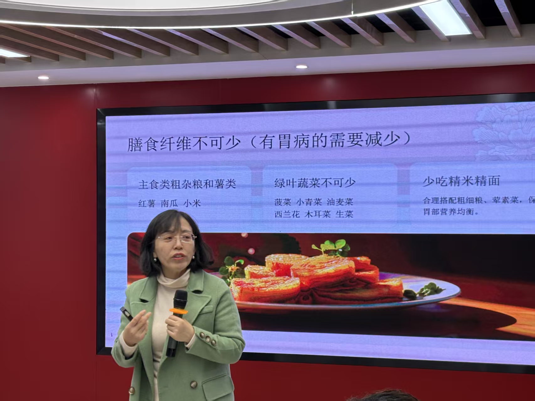 “我们不仅要懂得吃,更要享受吃,像关心老朋友一样关心我们的脾胃。”国家注册营养师王老师的话语,一下子拉近了与所有人的距离。她没有讲授深奥的术语,而是将“小雪”节气的智慧,化作了餐桌上的叮咛:一碗小米粥的温润,一碟蒸山药的甘平,都在诉说着秋冬季节里,身体最需要的故事。