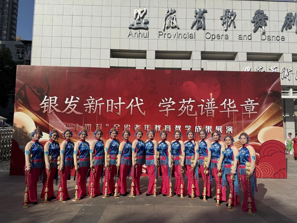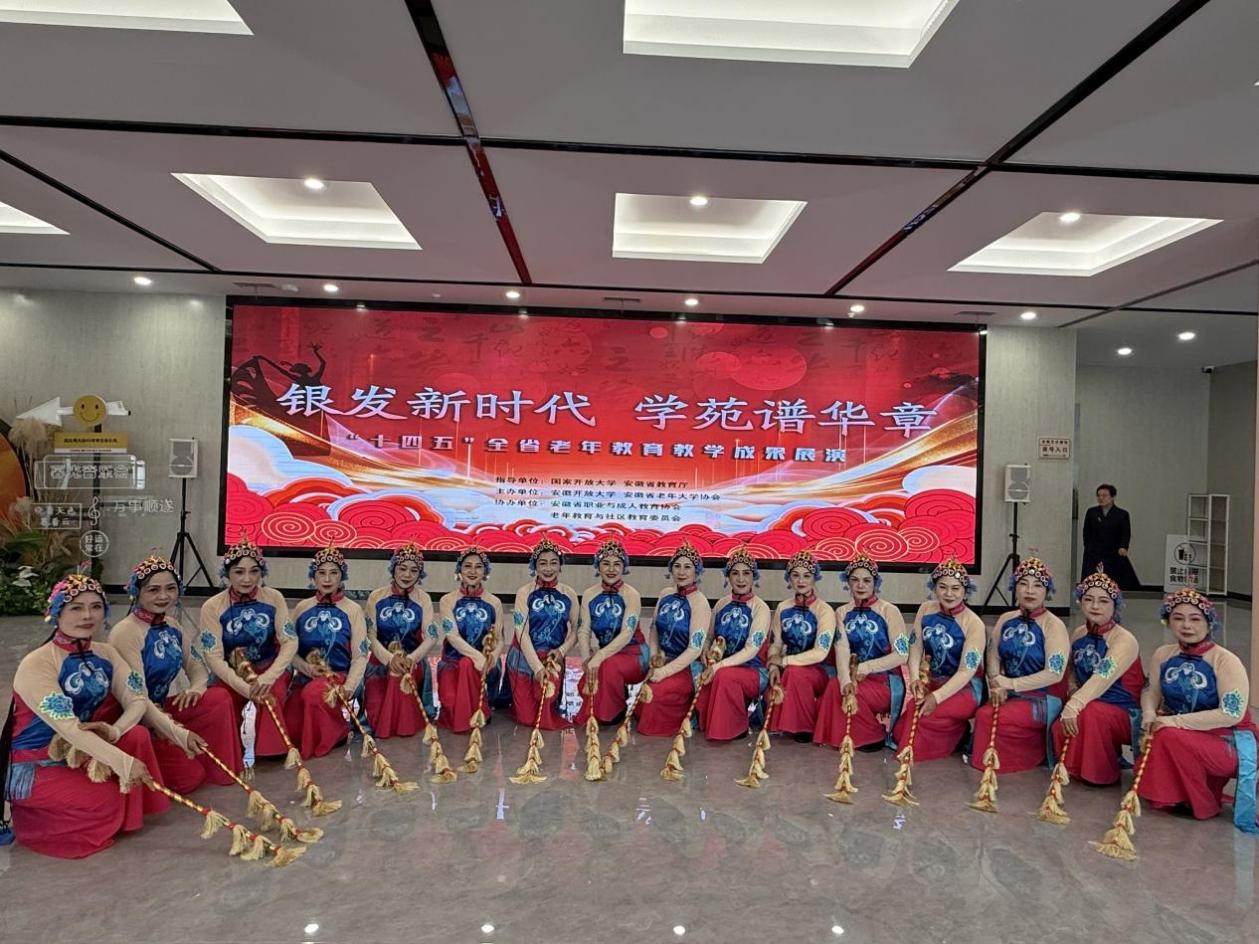 11月26日,由安徽省老年大学协会、安徽省教育厅职业与成人教育协会、安徽开放大学联合主办的“十四五”全省老年教育教学成果线下展演在安徽省歌舞剧院隆重举行。演出主题为“银发新时代 学苑谱华章”,共20个节目,金寨老年大学老校区的戏曲舞蹈《莲湘响花旦俏》入选本次盛会。副校长王琦带队参演,16名老年花旦以精湛的表演技艺、饱含地方韵味的艺术表达和昂扬向上的精神风貌,赢得了现场观众与评委的一致好评,生动展示了金寨老年教育的丰硕成果。