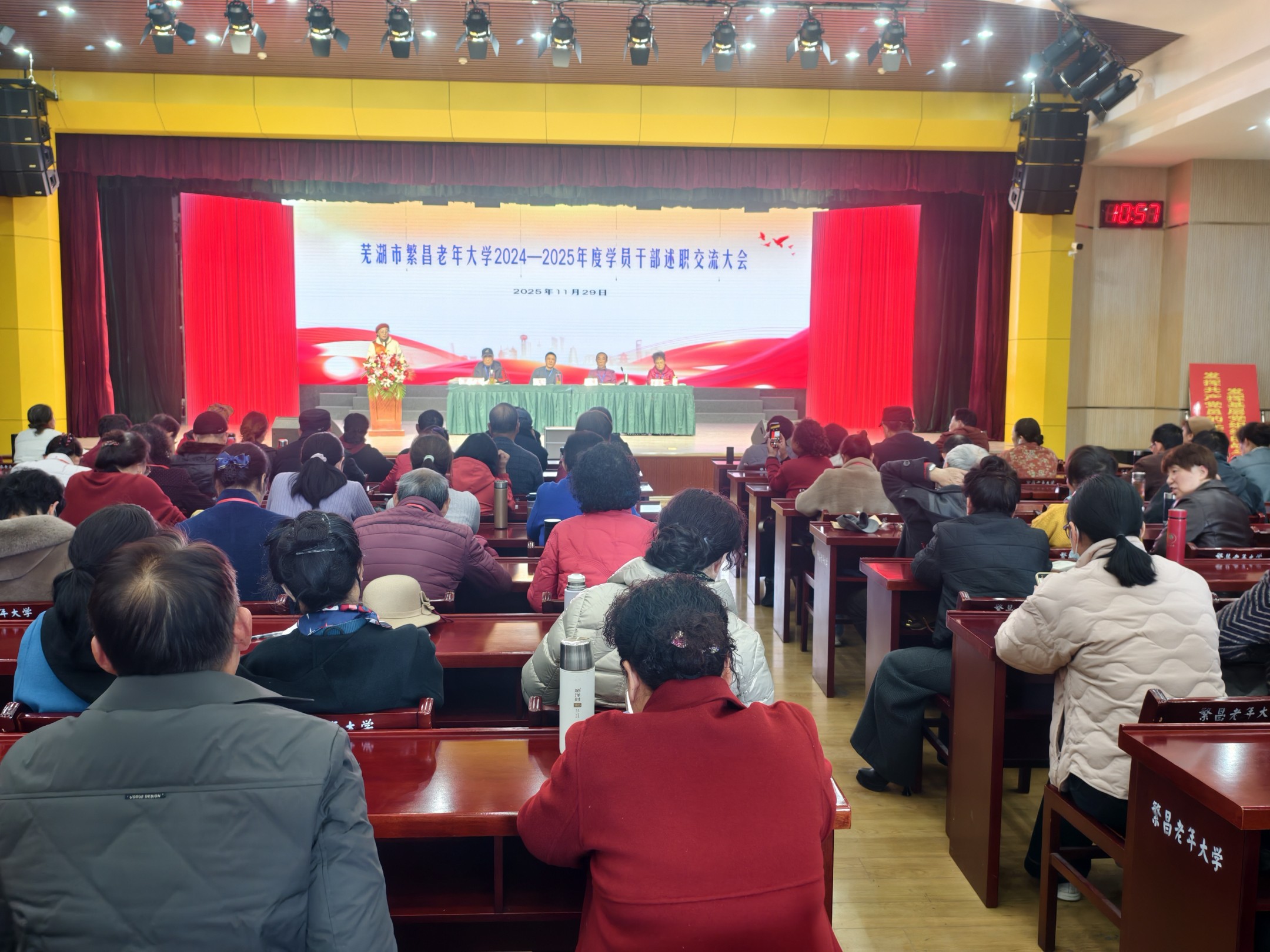 11月29日,繁昌老年大学2024—2025年度学员干部述职交流大会在校四楼报告大厅举行。校领导班子、全体学员干部共100多名参加。大会按述职交流和评选测评两个环节进行。