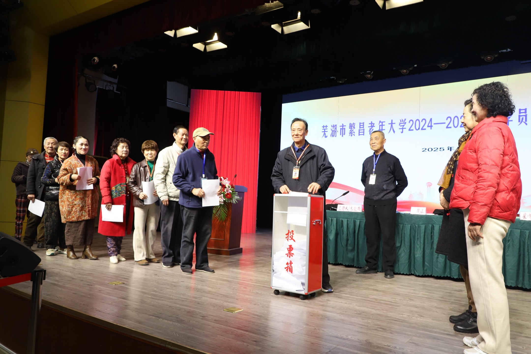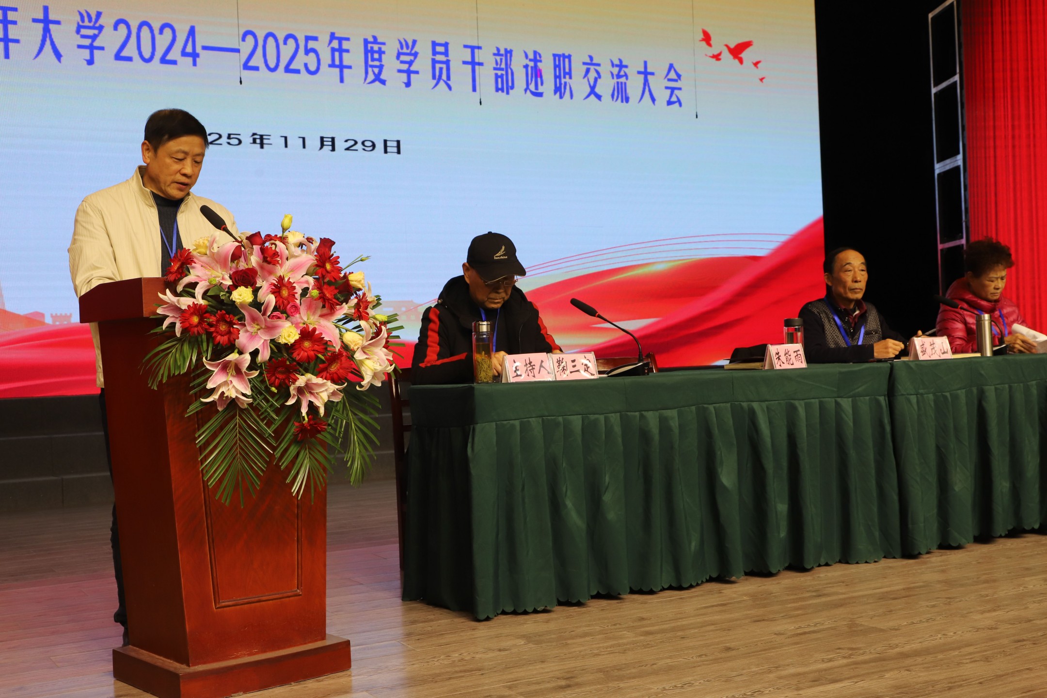 朱能雨作总结讲话。他充分肯定了两年来学干们向上向善的工作及成绩;同时要求学干以平常心看待评选工作。下一步要深入学习贯彻党的二十届四中全会精神,迈向“十五五”,以努力办好人民满意的老年教育为目标,以全国老年大学标准示范校为新的起点,为繁昌老年教育高质量发展再作新贡献。