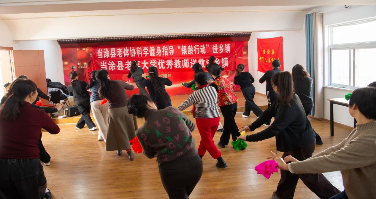 11月27日,当涂县老年大学在距县城最远的湖阳镇开展“广场舞教学进乡镇”活动。广场舞老师朱学慧耐心细致地讲解广场舞动作,其团队与镇老年学校50多名学员跟着节拍边听边练,现场学习氛围热烈,活动效果显著,深受学员们好评。大家纷纷表示,这样的送教上门活动实用又暖心,不仅学到了新舞姿,更感受到了县老年大学对乡镇老年群体的关怀,希望能经常开展类似活动。