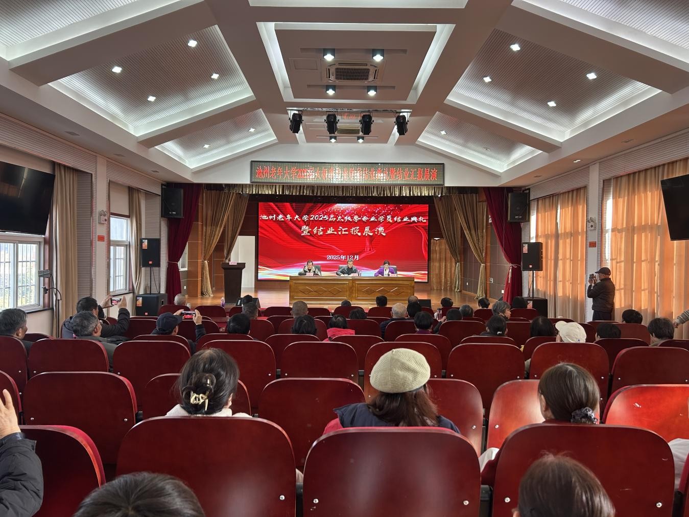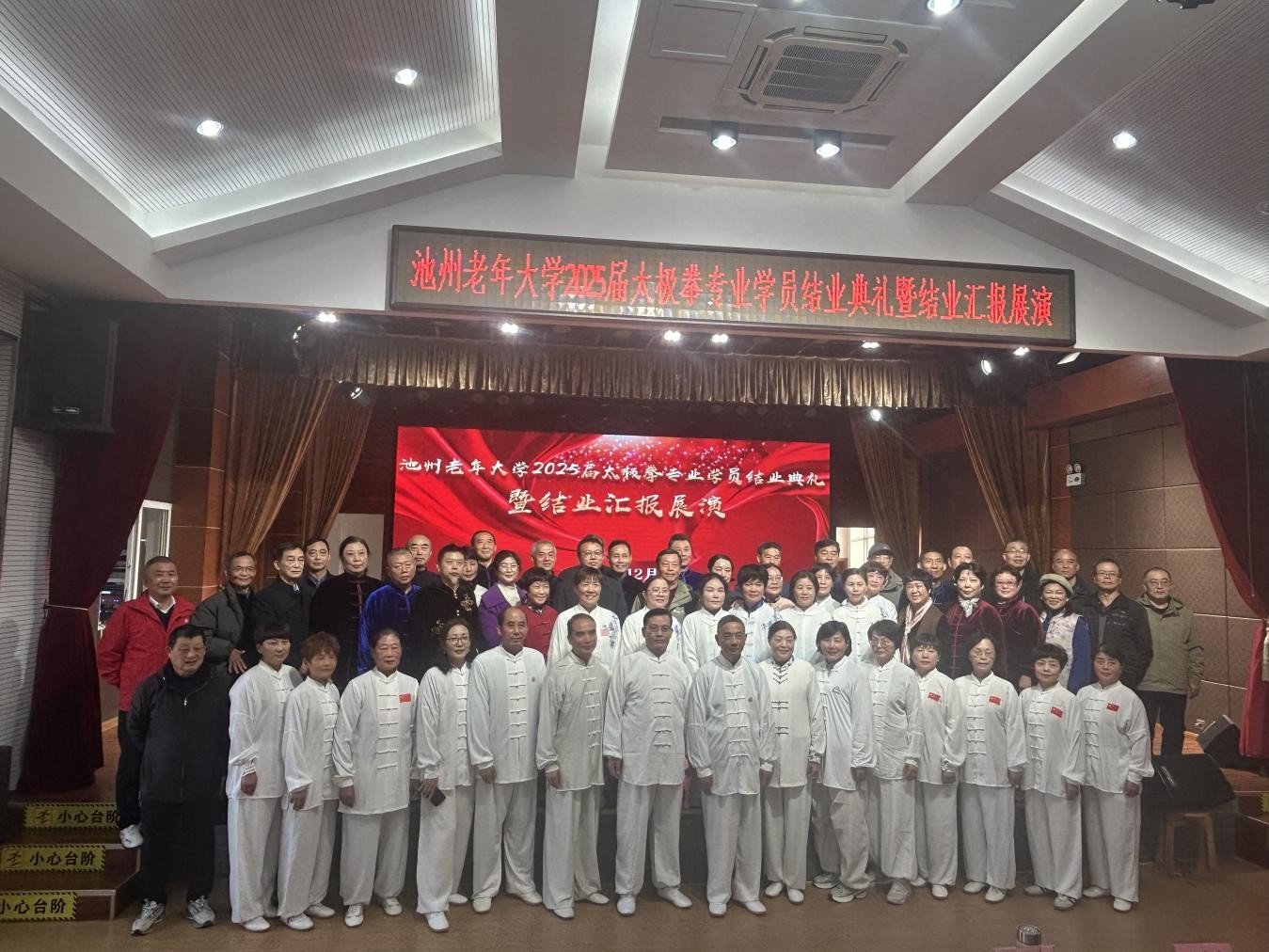 12月9日,池州老年大学2025届太极拳专业学员结业典礼暨结业汇报展演活动在池州老年大学南校区五楼多功能厅成功举办。