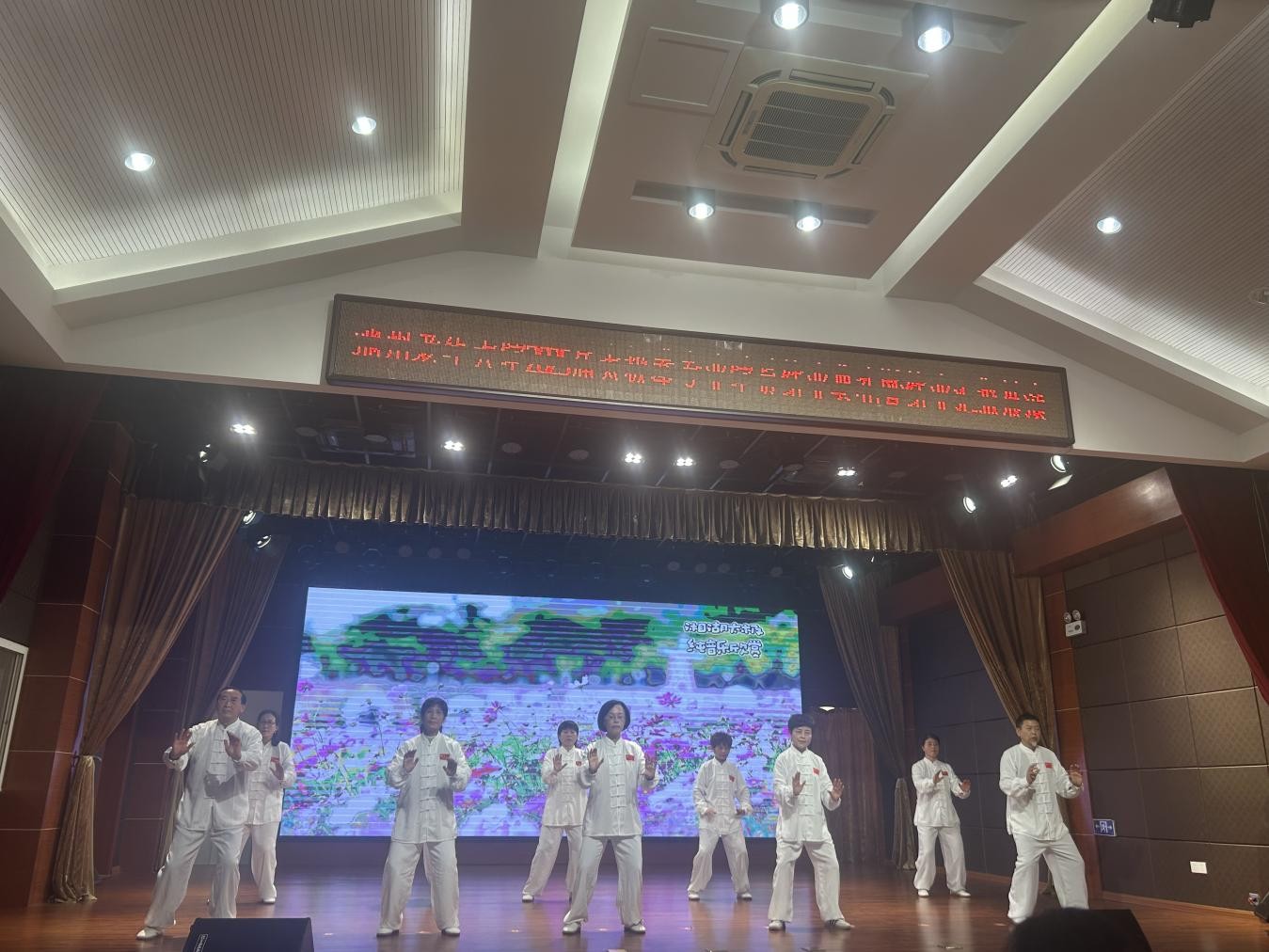 典礼结束后,结业汇报展演精彩上演。诗朗诵《遇见海水 扬帆远航》以真挚的情感致敬师恩、礼赞成长;电吹管独奏《红歌六连唱》旋律悠扬,唤起了大家共同的时代记忆;学员代表还将感恩之心凝于笔墨,现场向杨海水老师赠画致谢。太极拳24式、42式、85式及八法五步轮番亮相,学员们动作舒展圆活、招式连贯流畅,刚柔并济间尽显太极神韵,将多年勤学成果化作舞台上的从容绽放。整场展演形式丰富、异彩纷呈,充分展现了我校老年学员多才多艺的精神风貌与丰硕学习收获。