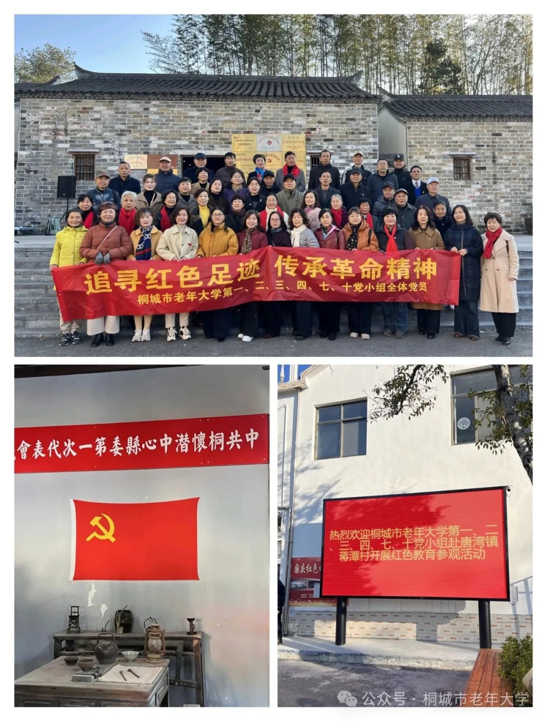12月6日,桐城市老年大学临时党支部组织部分党员学员,前往唐湾镇蒋潭村中共桐怀潜第一次党代会旧址开展红色主题教育活动,回顾峥嵘岁月,感悟先烈矢志不渝、英勇无畏的精神。
