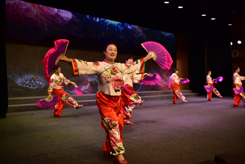 成果展在大合唱《走向复兴》中拉开序幕。舞蹈《祖国你好》,20位如仙女般装扮的舞者,以优美的舞姿展现祖国的壮丽河山,向高质量发展的伟大祖国致以最崇高的敬意,送上最深情的祝福!电吹管班的《最美的歌唱给妈妈》,以温暖的音色传递着对母爱的礼赞,使旋律充满倾诉感。拉丁舞班带来的《搀扶》,每段舞步背后,情感在悄然流淌,让人们感受到,你我相互搀扶不仅能传递心灵的旋律,更能共同谱写生命的乐章。朗诵班推出的配乐朗诵《秋天里的中国》,让人领略到大自然的画笔在中国大地上挥洒出一幅壮美的画卷。庐剧《荷包相配人团圆》,以优美的唱腔,展示了传统戏曲如同一颗璀璨的明珠镶嵌在江淮大地上。瑜伽表演《水韵江南》,将银龄舞者装饰得美体如画,那猫式伸展的弧度,恰似吻过山脊的曲线。富华社区教学点带来的非洲鼓《站在草原望北京》,将大地脉搏化作声浪翻涌,每一记重击都敲出最本真的韵律诗篇。此外,太极类、八段锦、气功的表演充满阳刚威仪;腰鼓声声,如同激昂的战歌;健身球、柔力球的碰撞,充满了力与美的结合;京剧、黄梅戏、打莲厢、花鼓灯轮番上阵,彰显了中国传统文化的魅力;形体舞、广场舞、交谊舞、旗袍秀的接续登台,尽显东方神韵;器乐合奏、二胡合奏、葫芦丝合奏,如天籁之音,沁人心脾。整场演出共30个节目相继登场,掌声、喝彩声接踵不断。