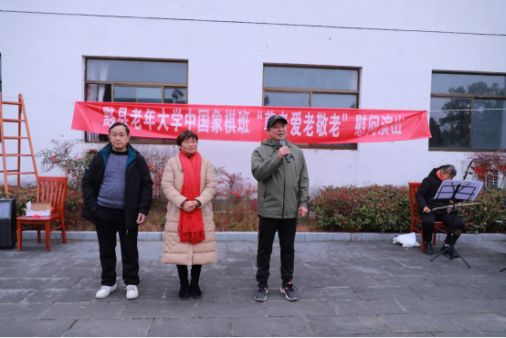 12月22日上午,黟县老年大学校长严月全带领学校班子成员、黟县养亲苑养老服务中心法定代表人汪喜美、中国象棋班汪国兴老师和全体学员代表,共同走进宏村镇敬老院,开展“尊老爱老敬老”主题慰问演出活动。演职人员用精心编排的文艺节目、真挚恳切的关怀问候,为院内老人们送上了一份充满温度的祝福。