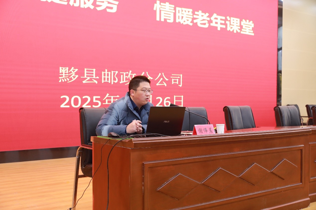 会上,黟县邮政分公司副总经理谢伟晨以《“邮”享便捷服务,情暖老年课堂》为题,为参会人员作了“银龄邮政”专属服务包:包括学费代收、刊物订阅、养老金到账提醒、防诈骗宣传、纪念邮票定制等一站式便捷服务,邀请学员体验手机APP线上办理功能,切实解决老年群体“数字鸿沟”问题,让老年学员在校园即可享受安全、贴心、高效的公共服务。