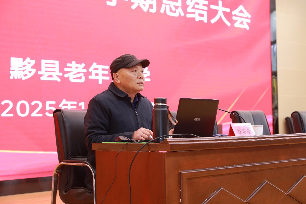 表彰和讲座环节后,副校长程国营代表学校作了题为《凝心聚力,笃行不怠,奋力谱写新时代老年教育新篇章》的秋季学期工作总结报告,对全体教职工的辛勤付出、全体学员的积极参与以及社会各界的大力支持表示了衷心感谢。他强调,这些成绩的取得,是大家同心同德、共同努力的结果。并就学校未来发展提出:一要坚持政治立校,把牢办学方向,引导老同志始终与党和国家事业发展同心同向;二要注重质量强校,提升教学管理水平,打造更多精品课程和品牌活动;三要推动文化兴校,深挖徽州文化内涵,让老年教育更具地方特色和时代气息;四要强化服务润校,用心用情做好服务保障工作,真正把学校建设成为老年朋友求知的学园、精神的家园、健康的乐园。