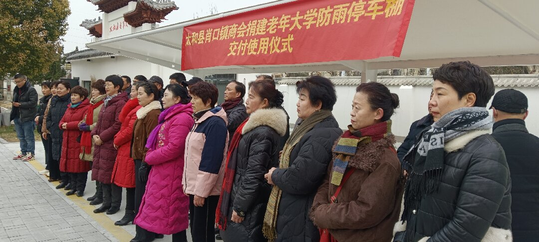 仪式上,陆凤杰在致辞中表示:太和县老年大学作为培育“三有”新时代老年人的重要阵地,近年来持续推进设施升级,此次肖口商会捐建的防雨停车棚,有效解决了老年学员停车避雨的实际需求,是商会践行社会责任、传递敬老温情的生动体现。