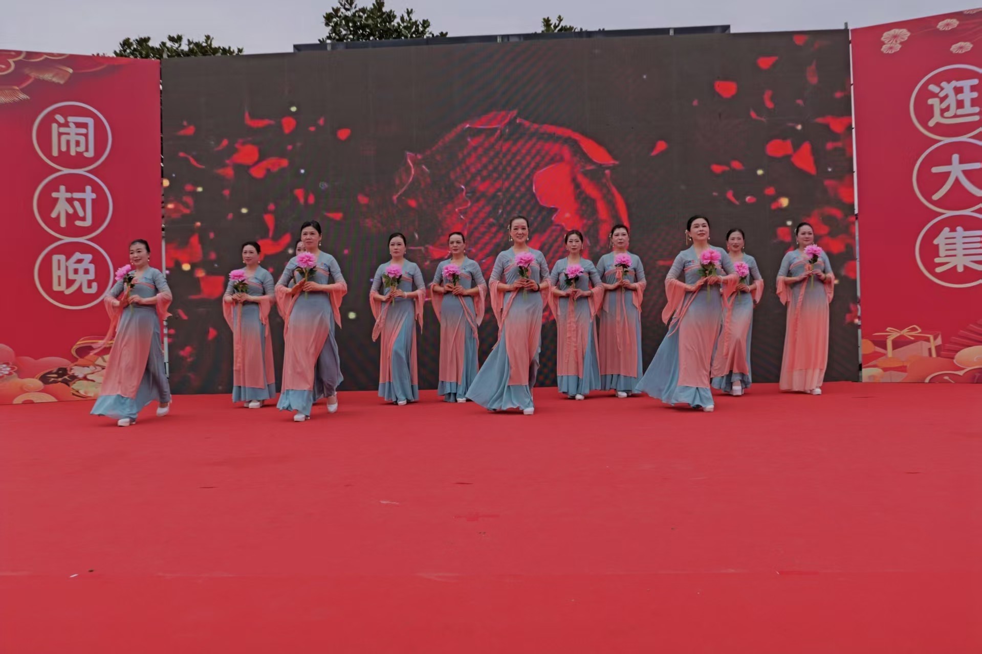 县老年大学老校区的学员们为此次“村晚”精心准备了三个特色节目。黄梅戏表演唱《好人多》旋律优美、唱腔婉转,用乡音传递了社会美德与人间真情;京歌伴舞《长征》气势磅礴,将传统京剧韵味与现代歌舞巧妙结合,重温红色经典,展现出昂扬向上的精神风貌;模特舞《花开中国》的演员们手持象征富贵的牡丹花,步履优雅、仪态万千,以独特的艺术形式表达了对祖国繁荣昌盛、人民生活幸福的美好祝福。老年学员们精神矍铄、感情充沛的表演,充分展现了新时代老年人的风采与活力。