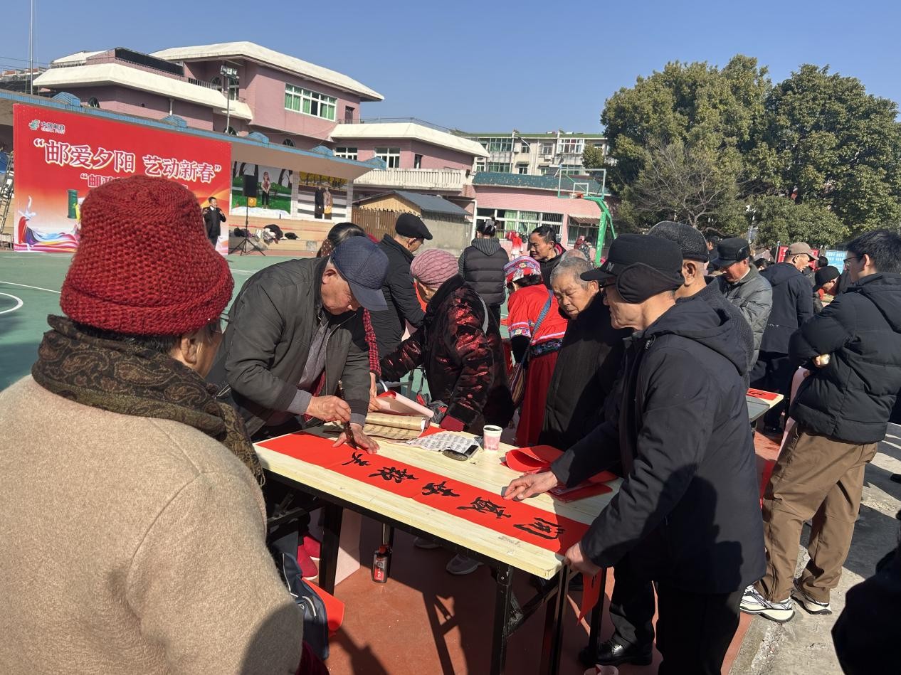 在春联展区,书法班的志愿者们早早到场,整齐摆放好笔墨纸砚。居民们纷纷围聚在书写桌前,有的仔细挑选心仪的春联词句,有的请志愿者书写定制专属对联,现场欢声笑语不断,其乐融融。志愿者们全程伏案挥毫,铺纸、研墨、落笔、收笔一气呵成,一副副饱含新春祝福的春联、一个个饱满喜庆的“福”字接连诞生,引得围观市民频频称赞、驻足喝彩。短短两个小时,学员们便送出春联及“福”字200余副。
