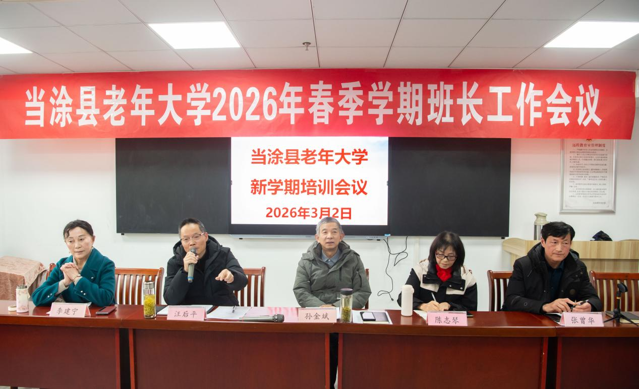 3月2日上午,当涂县老年大学在本校201教室召开春季学期班长培训会,校委会、学委会成员及全体班长参会。培训会由副校长汪后平主持。