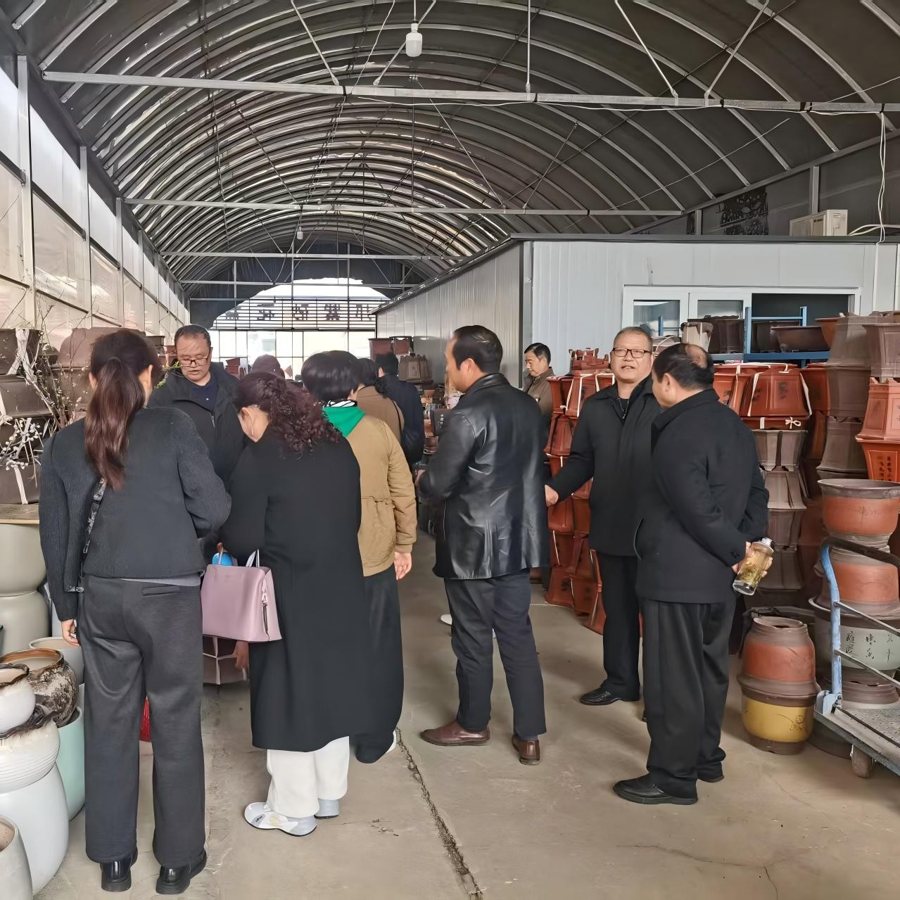 作为安徽省规模最大、业态最全的花木交易集散地,中国中部花木城占地千余亩,汇集了来自全国各地的奇花异草、名贵盆景和园艺资材。刚一踏入花木城,学员们便被眼前的景象深深吸引——娇艳欲滴的蝴蝶兰、造型各异的盆景、郁郁葱葱的绿植,还有琳琅满目的花盆、肥料、工具,让这些“银发学子”瞬间化身为“好奇宝宝”。