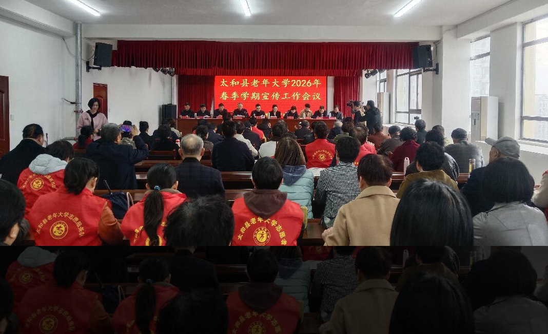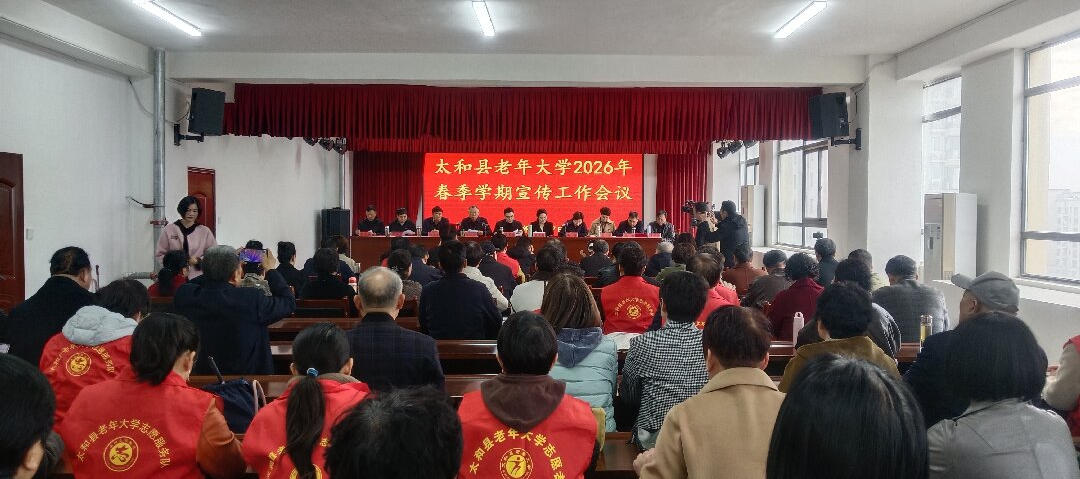 3月27日 ,太和县老年大学2026年春季学期宣传工作会议顺利召开。县委组织部副部长蒋昱城、县委宣传部副部长胡玉梅,县老年大学校长陆凤杰及校委会全体成员出席会议,学校宣传工作相关人员参会。