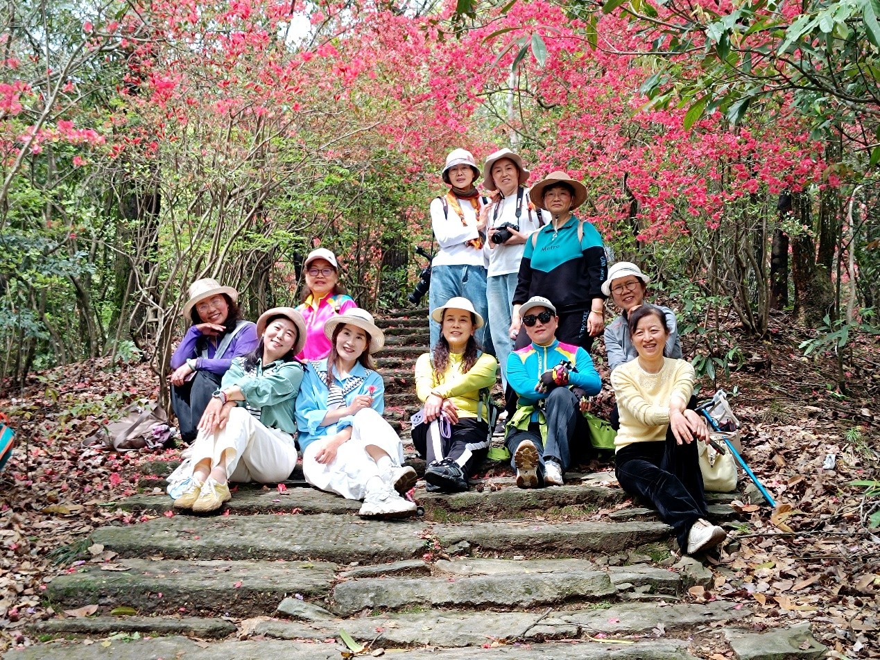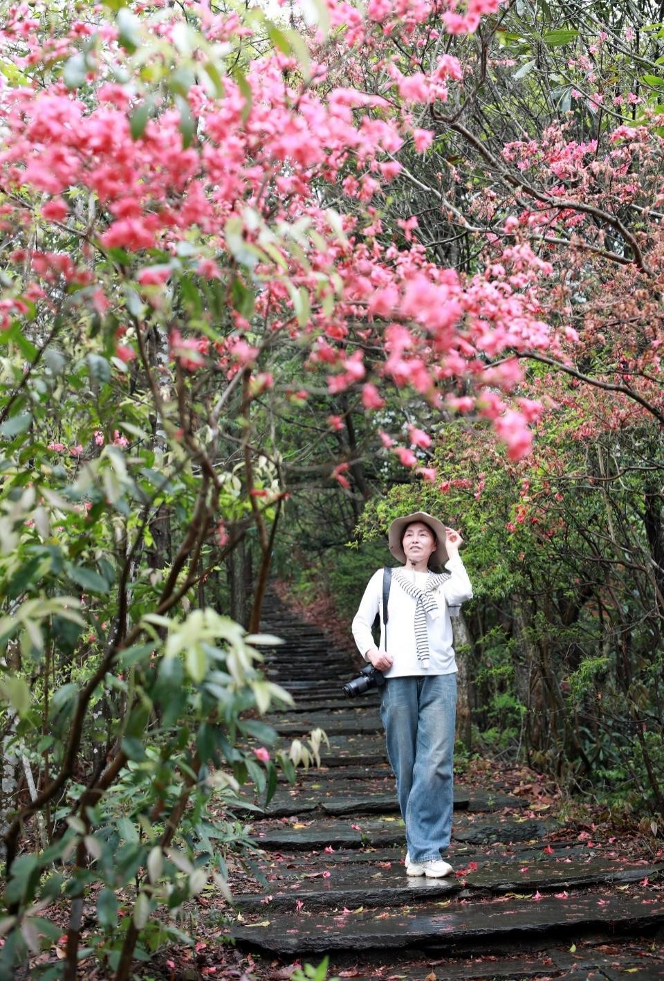随着脚步的深入,空气中渐渐弥漫起淡淡的花香,原来漫山遍野的杜鹃花已悄然绽放。红的似火,粉的如霞,白的像雪,与翠绿的山林相互映衬,构成了一幅绝美的春日画卷。学员们被眼前的美景所震撼,纷纷感叹大自然的鬼斧神工。