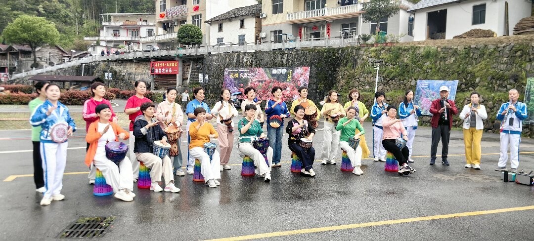 4月11日,电吹管班与手鼓班携手,赴岳西天峡开展联合“游学养”活动。春日天峡青山叠翠、杜鹃盛放,学员们漫步花海、交流学习心得,彼此搀扶、情谊深厚。活动现场,大家联袂演奏《开门红》《花又期》《军中绿花》等经典曲目,鼓乐与笛声交织,悠扬的旋律回荡山间,引得过往游客纷纷驻足喝彩,定格下老年学员乐享生活的美好瞬间。
