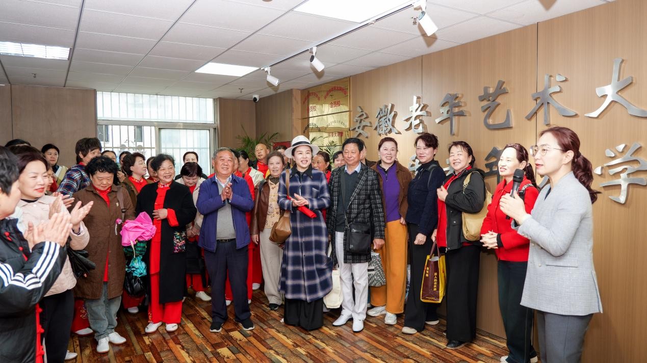 交流研讨过后,文艺展演精彩启幕。两校师生轮番登台,以节目为媒展现教学成果与精神风貌。健乐老年大学献上手鼓《战马》、太极笔《太极毛笔十八式》、模特《半生戏》等节目,刚柔并济、气势昂扬,尽显老年学员的精气神;金寨老年大学呈现模特时装《眼镜秀》、国风旗袍《国风盛典》、健身气功《八段锦》、东北手绢舞《俏》、满族花棍舞、健身功《马王堆导引术》等精品节目,灵动优美、韵味十足,赢得现场阵阵掌声。整场展演兼具艺术性与观赏性,既展示了两校教学成效,也凝聚了银发学子热爱生活、积极向上的精神力量。