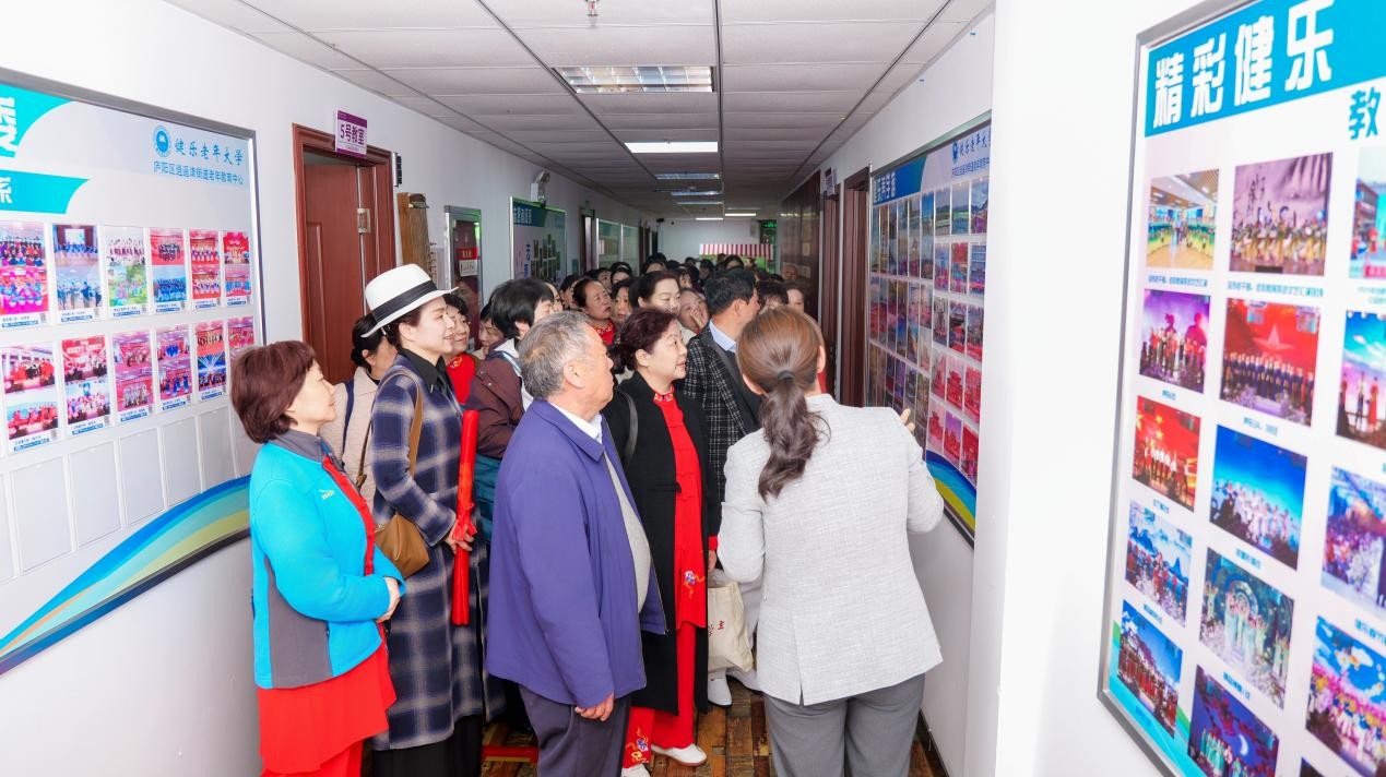 活动伊始,在健乐老年大学校长李静率师生热情迎接和引导下,金寨老年大学一行先后参观了校园文化长廊、书画展厅、图书阅览室、教学剪影展示区等功能区域。大家驻足欣赏师生书画作品、教学成果展览与游学活动纪实,深入了解健乐老年大学的课程设置、教学管理、校园文化建设等方面的特色经验;参观了校内助农超市等特色场景,全方位感受其 “乐学、乐为、乐享”的办学氛围。